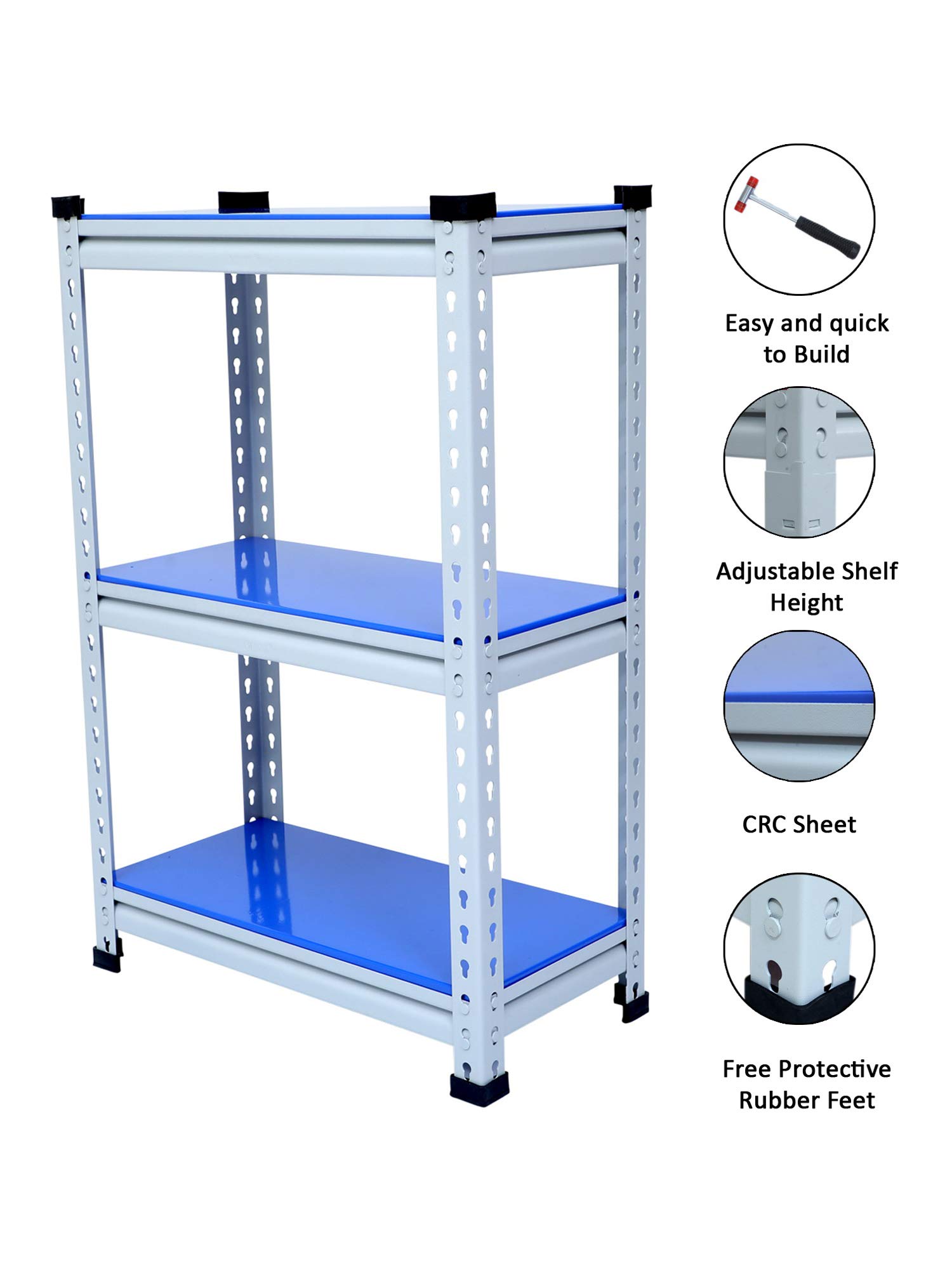 Key FeaturesMaterial Type: Prime CRC Sheet, Free Protective Rubber Feet. Usage: It's a Multipurpose boltless rack which can be used as kitchen racks, book racks, cloth racks, office racks and Industries rack etc.