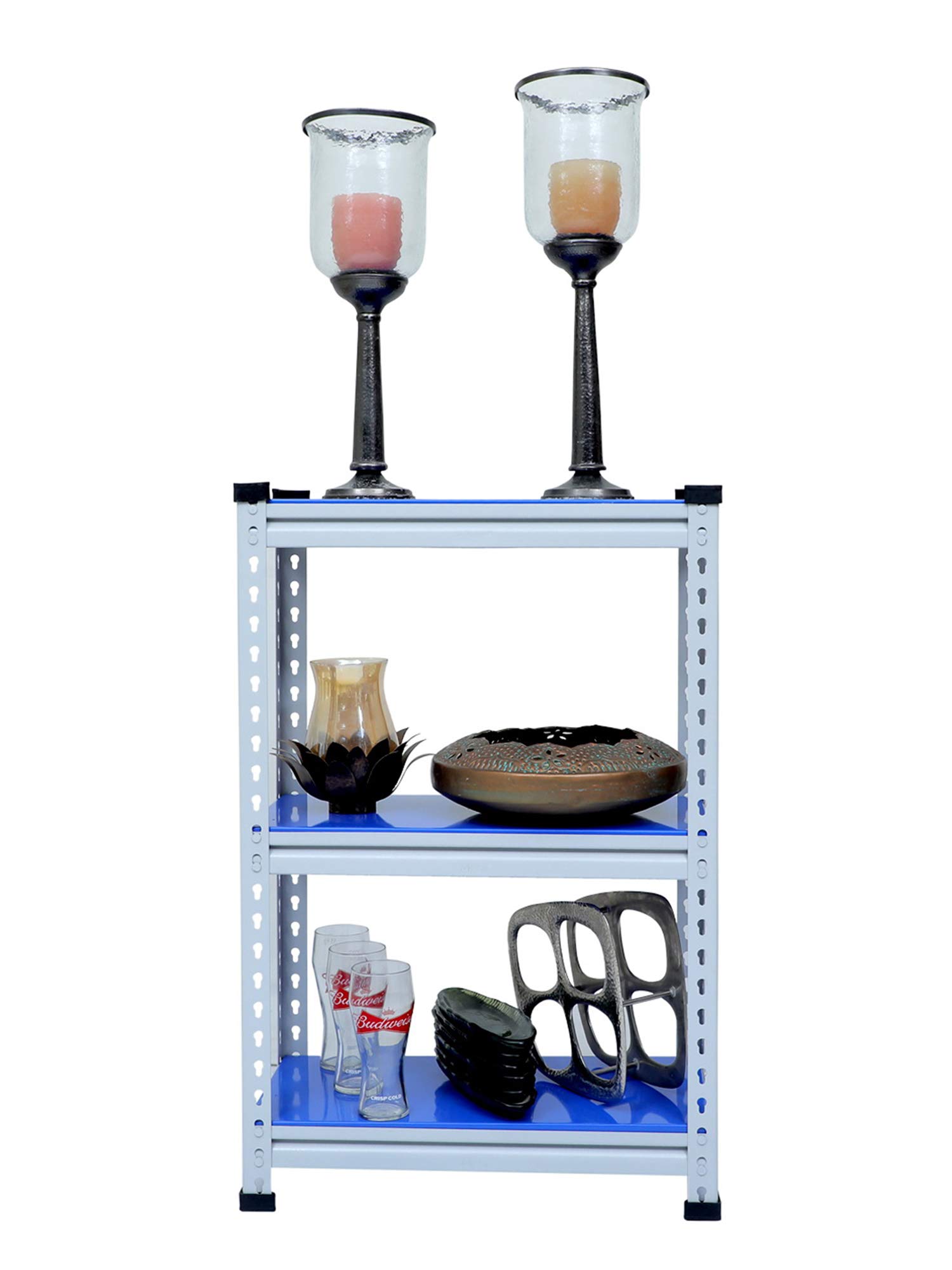 Mil Nil Industries is equipped with highly sophisticated machines supported by an enhanced system of quality analysis. We are always ahead with unmatched quality and durability. Our unique industrial & office Mil-Nil brand products are in various ranges with innovative designs introduced regularly through our reliable team of dealers. Our mission is to provide our customers best quality products with an accurate gauge and weight at a reasonable price. To help the buyer to choose the product sold by multiple sellers, we suggest few validation criteria, few checks to ensure the desired quality and accurate gauge has been received at buyer end. We have mentioned 3 shelves Boltless rack and gauge variation (18, 20, 22) with weight of each product in our every listed product to understand buyers that they are getting accurate gauge with accurate weight. While comparing rates of similar size products consider gauge with weight while deciding. This blue adjustable shelving unit allows you to customize the heights of each of your shelves, which hold up to 220 lbs each. And its versatility allows you to get organized in your kitchen, your garage, your basement… really anywhere.
