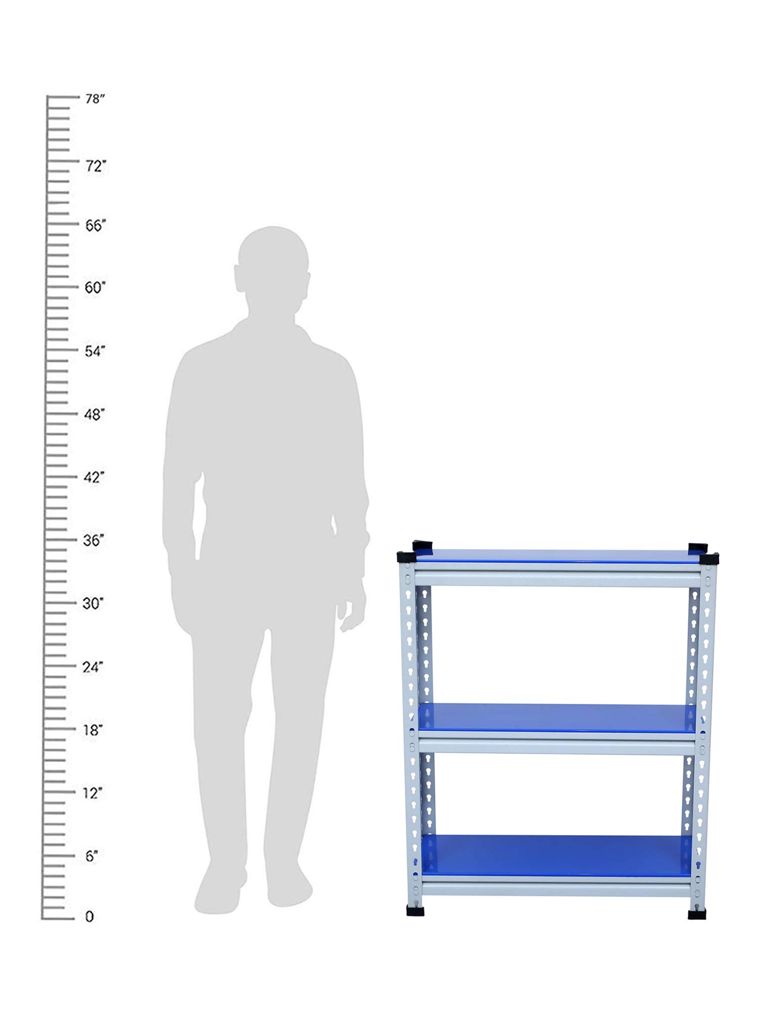 Mil Nil Industries is equipped with highly sophisticated machines supported by an enhanced system of quality analysis. We are always ahead with unmatched quality and durability. Our unique industrial & office Mil-Nil brand products are in various ranges with innovative designs introduced regularly through our reliable team of dealers. Our mission is to provide our customers best quality products with an accurate gauge and weight at a reasonable price. To help the buyer to choose the product sold by multiple sellers, we suggest few validation criteria, few checks to ensure the desired quality and accurate gauge has been received at buyer end. We have mentioned 3 shelves Boltless rack and gauge variation (18, 20, 22) with weight of each product in our every listed product to understand buyers that they are getting accurate gauge with accurate weight. While comparing rates of similar size products consider gauge with weight while deciding. This blue adjustable shelving unit allows you to customize the heights of each of your shelves, which hold up to 220 lbs each. And its versatility allows you to get organized in your kitchen, your garage, your basement… really anywhere.