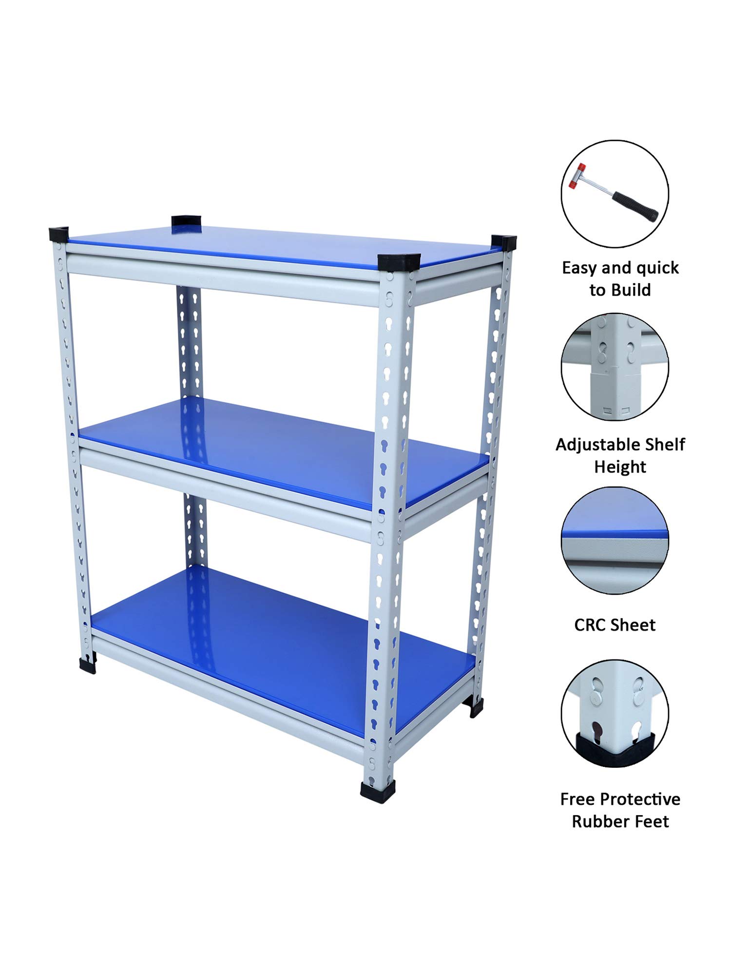 Key FeaturesMaterial Type:Prime CRC Sheet,Free Protective Rubber Feet.Uses:It's a Multipurpose boltless rack which can be used as kitchen racks,book racks,cloth racks,office racks and Industries rack etc.