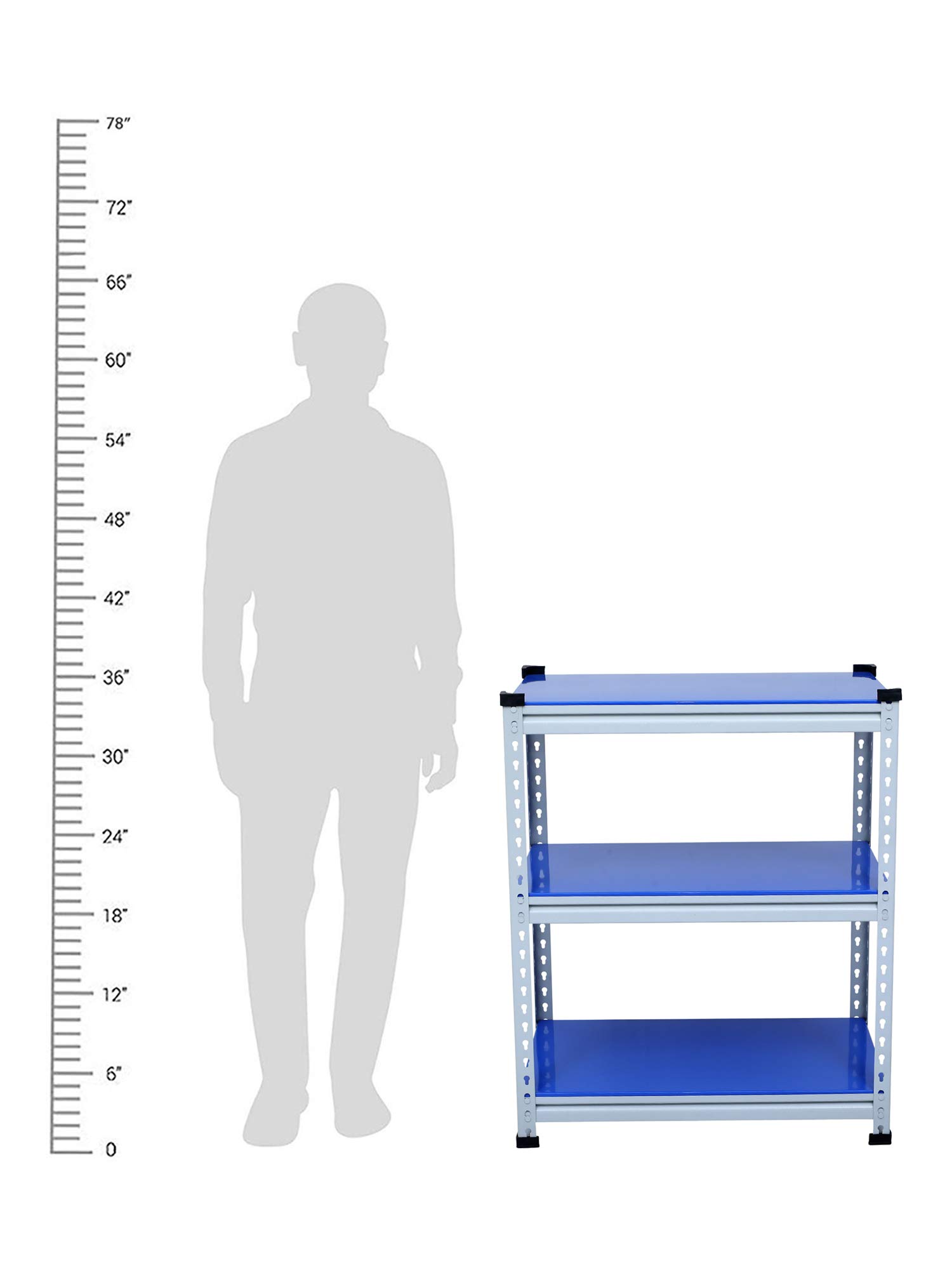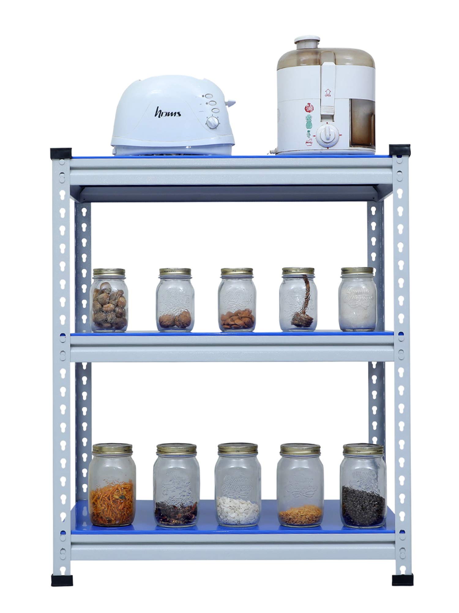 Mil Nil Industries is equipped with highly sophisticated machines supported by an enhanced system of quality analysis. We are always ahead with unmatched quality and durability. Our unique industrial & office Mil-Nil brand products are in various ranges with innovative designs introduced regularly through our reliable team of dealers. Our mission is to provide our customers best quality products with an accurate gauge and weight at a reasonable price. To help the buyer to choose the product sold by multiple sellers, we suggest few validation criteria, few checks to ensure the desired quality and accurate gauge has been received at buyer end. We have mentioned 3 shelves Boltless rack and gauge variation (18, 20, 22) with weight of each product in our every listed product to understand buyers that they are getting accurate gauge with accurate weight. While comparing rates of similar size products consider gauge with weight while deciding. This blue adjustable shelving unit allows you to customize the heights of each of your shelves, which hold up to 220 lbs each. And its versatility allows you to get organized in your kitchen, your garage, your basement… really anywhere.