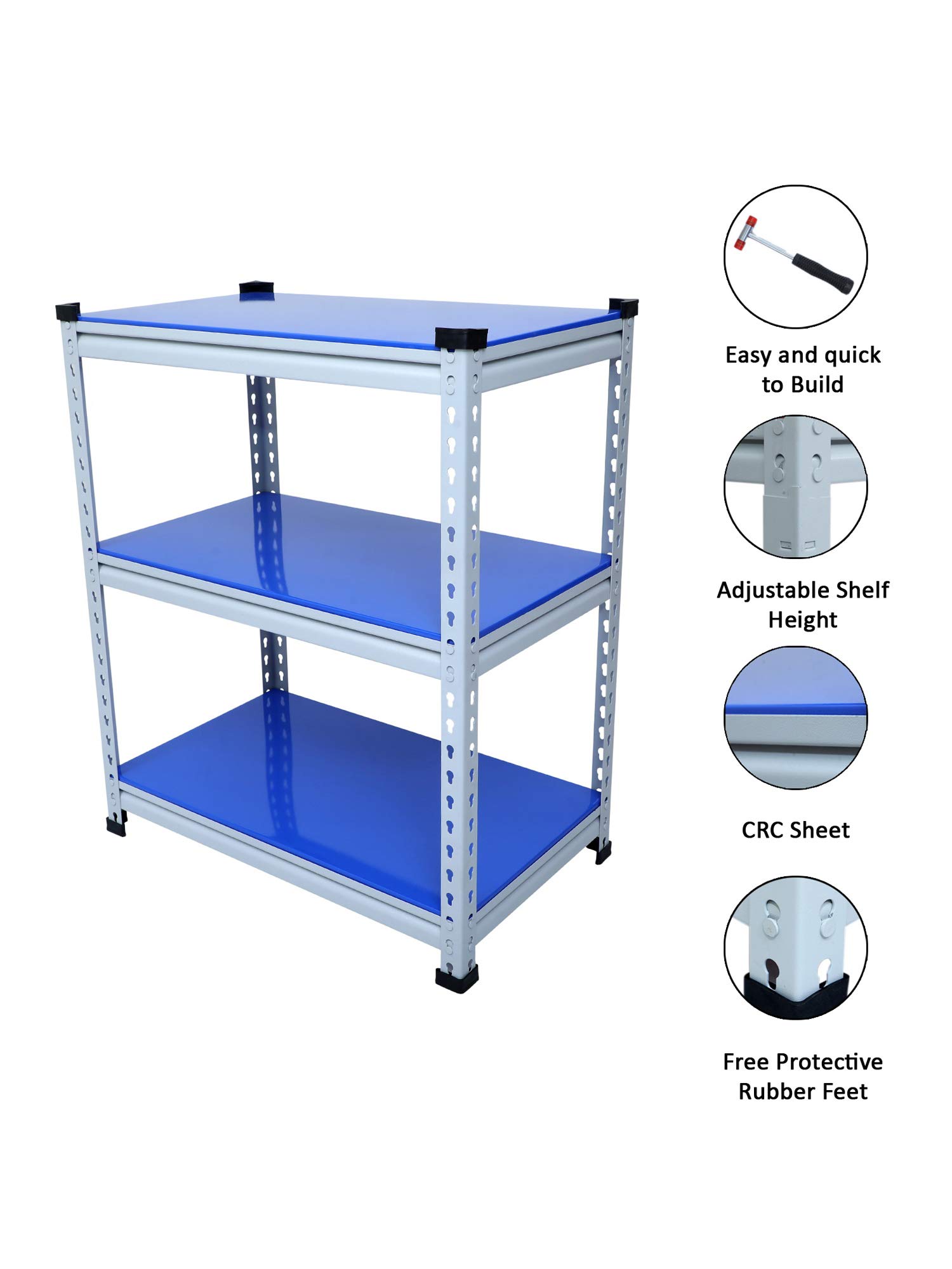 Key FeaturesMaterial Type:Prime CRC Sheet,Free Protective Rubber Feet.Uses:It's a Multipurpose boltless rack which can be used as kitchen racks,book racks,cloth racks,office racks and Industries rack etc.