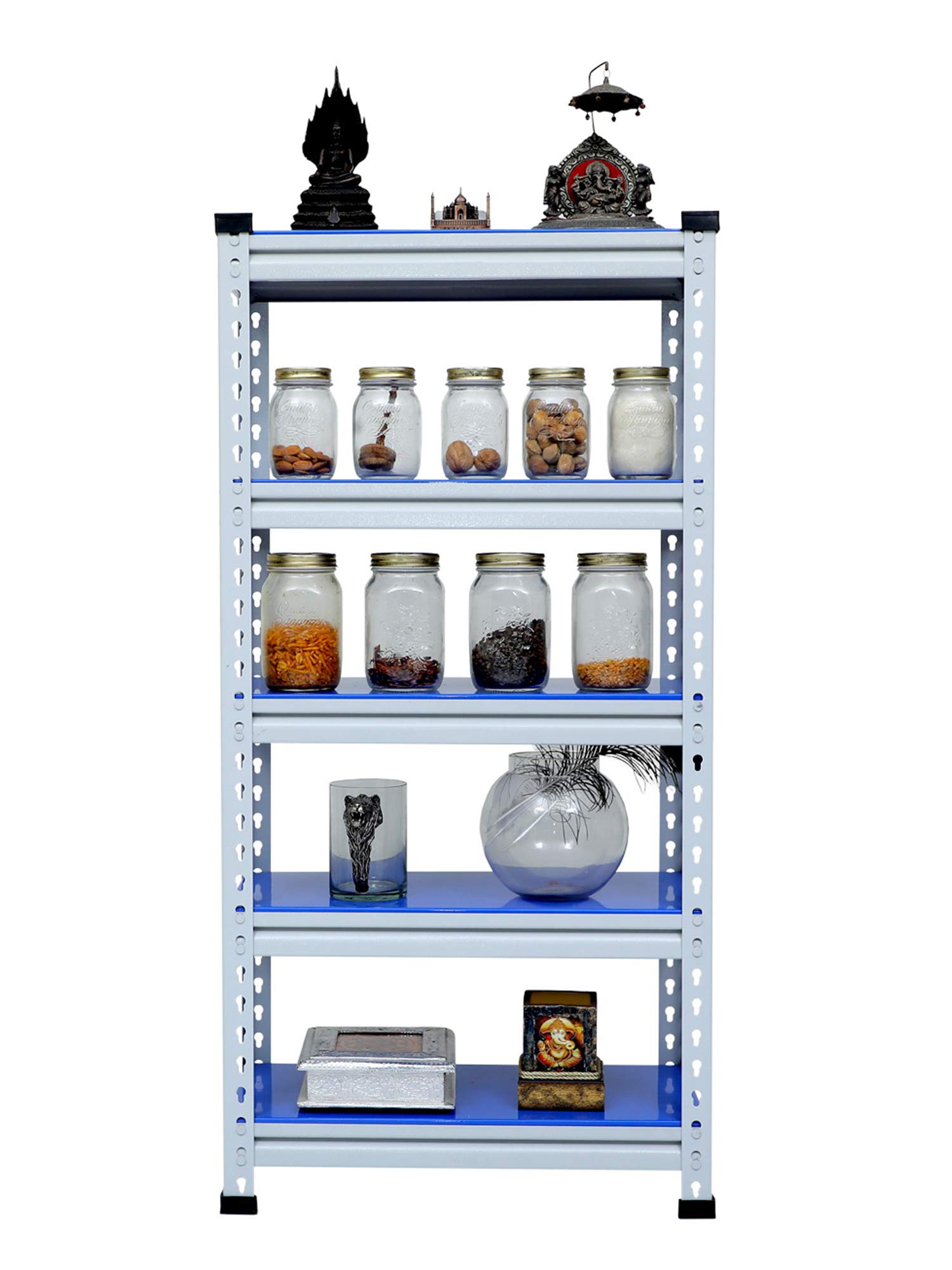 Mil Nil Industries is equipped with highly sophisticated machines supported by an enhanced system of quality analysis. We are always ahead with unmatched quality and durability. Our unique industrial & office Mil-Nil brand products are in various ranges with innovative designs introduced regularly through our reliable team of dealers. Our mission is to provide our customers best quality products with an accurate gauge and weight at a reasonable price. To help the buyer to choose the product sold by multiple sellers, we suggest few validation criteria, few checks to ensure the desired quality and accurate gauge has been received at buyer end. We have mentioned 5 shelves Boltless rack and gauge variation (18, 20, 22) with weight of each product in our every listed product to understand buyers that they are getting accurate gauge with accurate weight. While comparing rates of similar size products consider gauge with weight while deciding. This blue adjustable shelving unit allows you to customize the heights of each of your shelves, which hold up to 220 lbs each. And its versatility allows you to get organized in your kitchen, your garage, your basement… really anywhere.