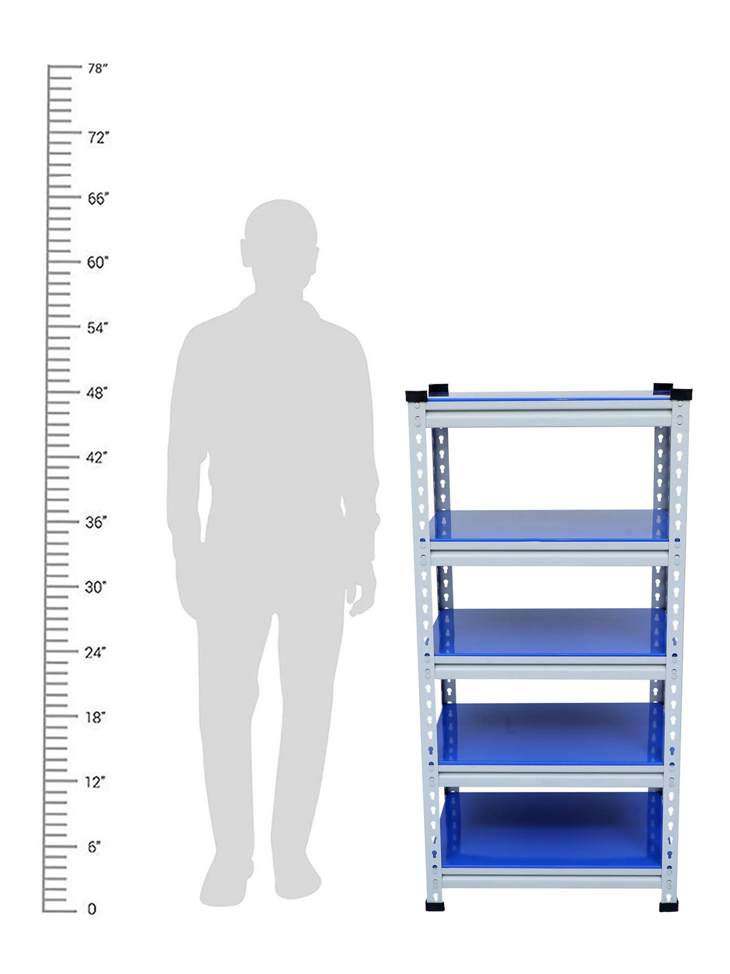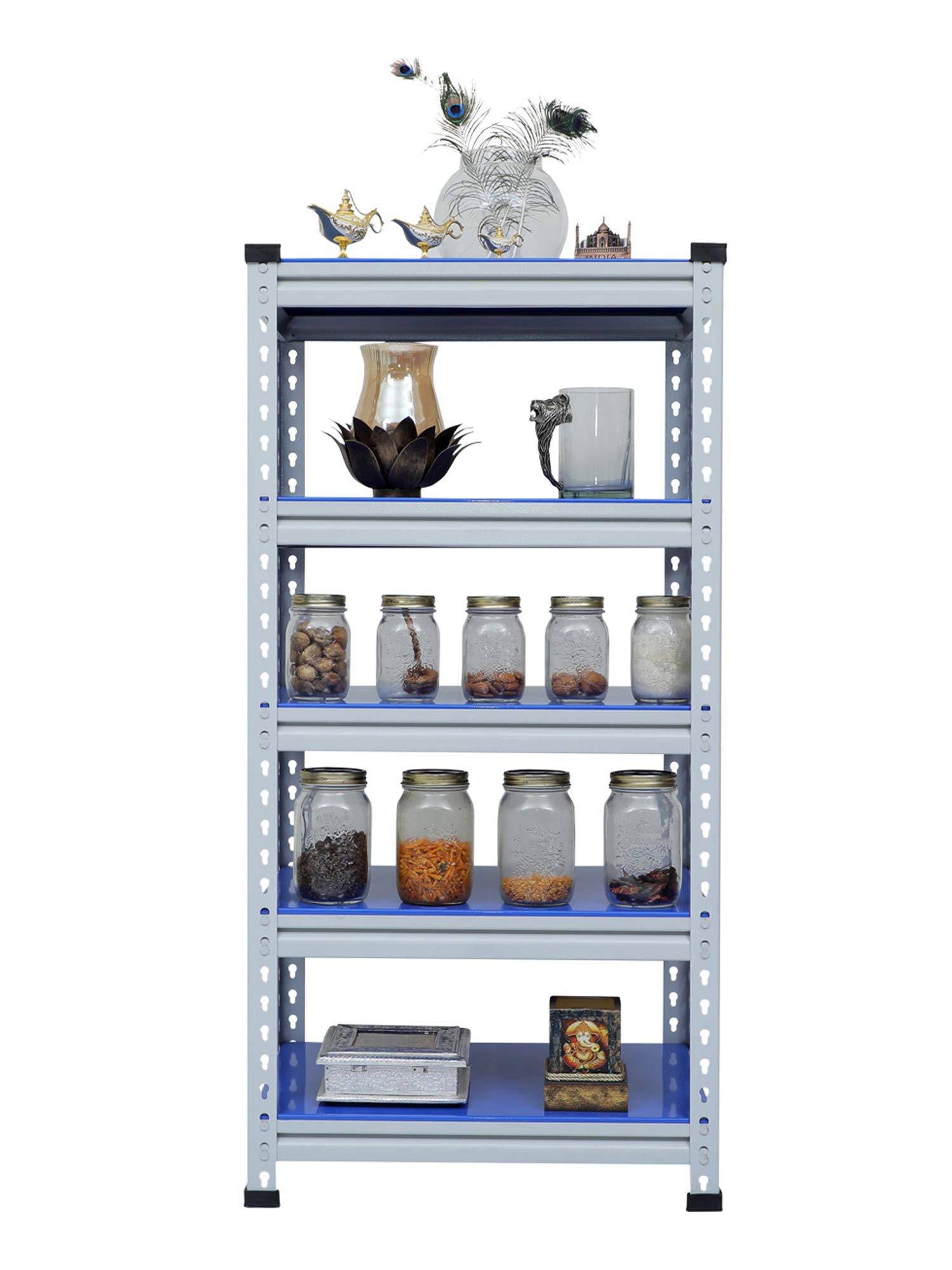 Mil Nil Industries is equipped with highly sophisticated machines supported by an enhanced system of quality analysis. We are always ahead with unmatched quality and durability. Our unique industrial & office Mil-Nil brand products are in various ranges with innovative designs introduced regularly through our reliable team of dealers. Our mission is to provide our customers best quality products with an accurate gauge and weight at a reasonable price. To help the buyer to choose the product sold by multiple sellers, we suggest few validation criteria, few checks to ensure the desired quality and accurate gauge has been received at buyer end. We have mentioned 5 shelves Boltless rack and gauge variation (18, 20, 22) with weight of each product in our every listed product to understand buyers that they are getting accurate gauge with accurate weight. While comparing rates of similar size products consider gauge with weight while deciding. This blue adjustable shelving unit allows you to customize the heights of each of your shelves, which hold up to 220 lbs each. And its versatility allows you to get organized in your kitchen, your garage, your basement… really anywhere.