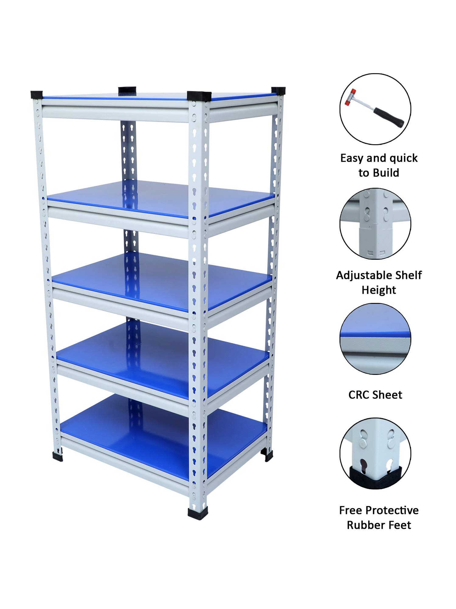 Bullet Point 4Number of Shelf: 5, Gauge: 18 Gauge, Sales package: 1 Standing Shelf Unit, Assemble: Easy and quick to build.