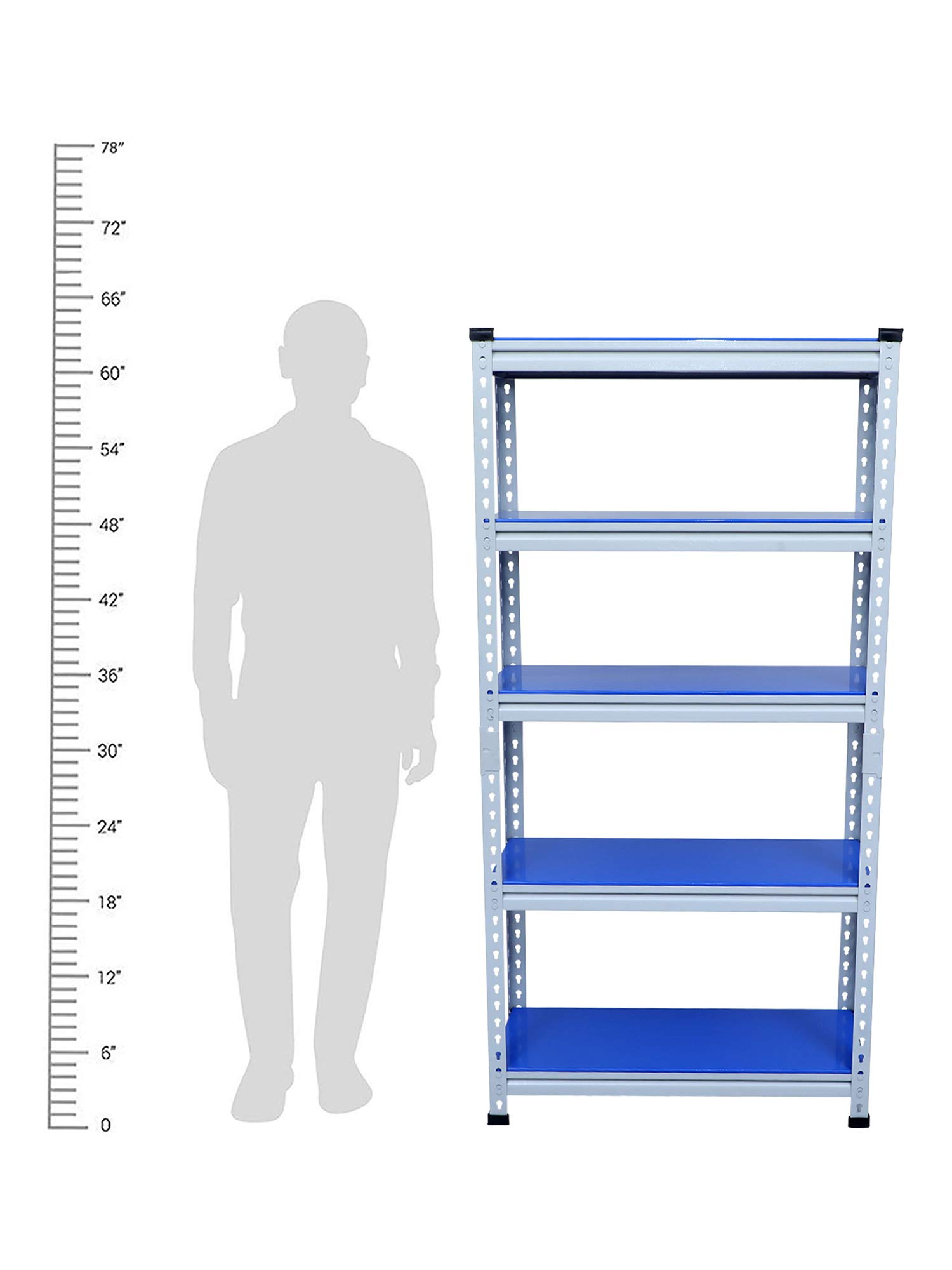 Mil Nil Industries is equipped with highly sophisticated machines supported by an enhanced system of quality analysis. We are always ahead with unmatched quality and durability. Our unique industrial & office Mil-Nil brand products are in various ranges with innovative designs introduced regularly through our reliable team of dealers. Our mission is to provide our customers best quality products with an accurate gauge and weight at a reasonable price. To help the buyer to choose the product sold by multiple sellers, we suggest few validation criteria, few checks to ensure the desired quality and accurate gauge has been received at buyer end. We have mentioned 5 shelves Boltless rack and gauge variation (18, 20, 22) with weight of each product in our every listed product to understand buyers that they are getting accurate gauge with accurate weight. While comparing rates of similar size products consider gauge with weight while deciding. This blue adjustable shelving unit allows you to customize the heights of each of your shelves, which hold up to 220 lbs each. And its versatility allows you to get organized in your kitchen, your garage, your basement… really anywhere.