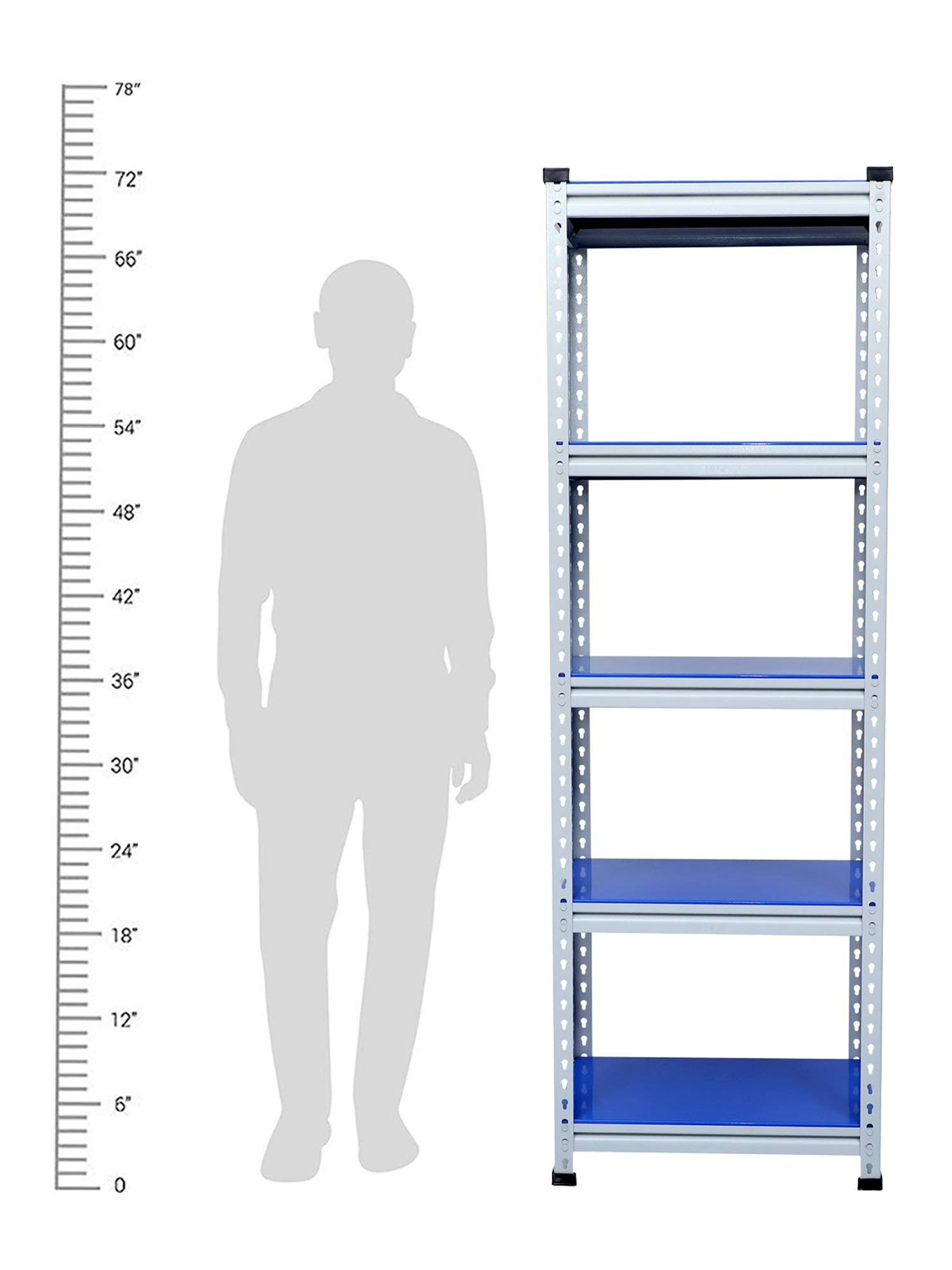Mil Nil Industries is equipped with highly sophisticated machines supported by an enhanced system of quality analysis. We are always ahead with unmatched quality and durability. Our unique industrial & office Mil-Nil brand products are in various ranges with innovative designs introduced regularly through our reliable team of dealers. Our mission is to provide our customers best quality products with an accurate gauge and weight at a reasonable price. To help the buyer to choose the product sold by multiple sellers, we suggest few validation criteria, few checks to ensure the desired quality and accurate gauge has been received at buyer end. We have mentioned 5 shelves Boltless rack and gauge variation (18, 20, 22) with weight of each product in our every listed product to understand buyers that they are getting accurate gauge with accurate weight. While comparing rates of similar size products consider gauge with weight while deciding. This blue adjustable shelving unit allows you to customize the heights of each of your shelves, which hold up to 220 lbs each. And its versatility allows you to get organized in your kitchen, your garage, your basement… really anywhere.