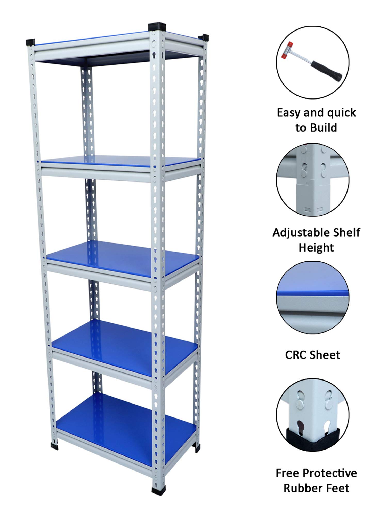 Key FeaturesMaterial Type: Prime CRC Sheet, Free Protective Rubber Feet. Usage: It's a Multipurpose boltless rack which can be used as kitchen racks, book racks, cloth racks, office racks and Industries rack etc.