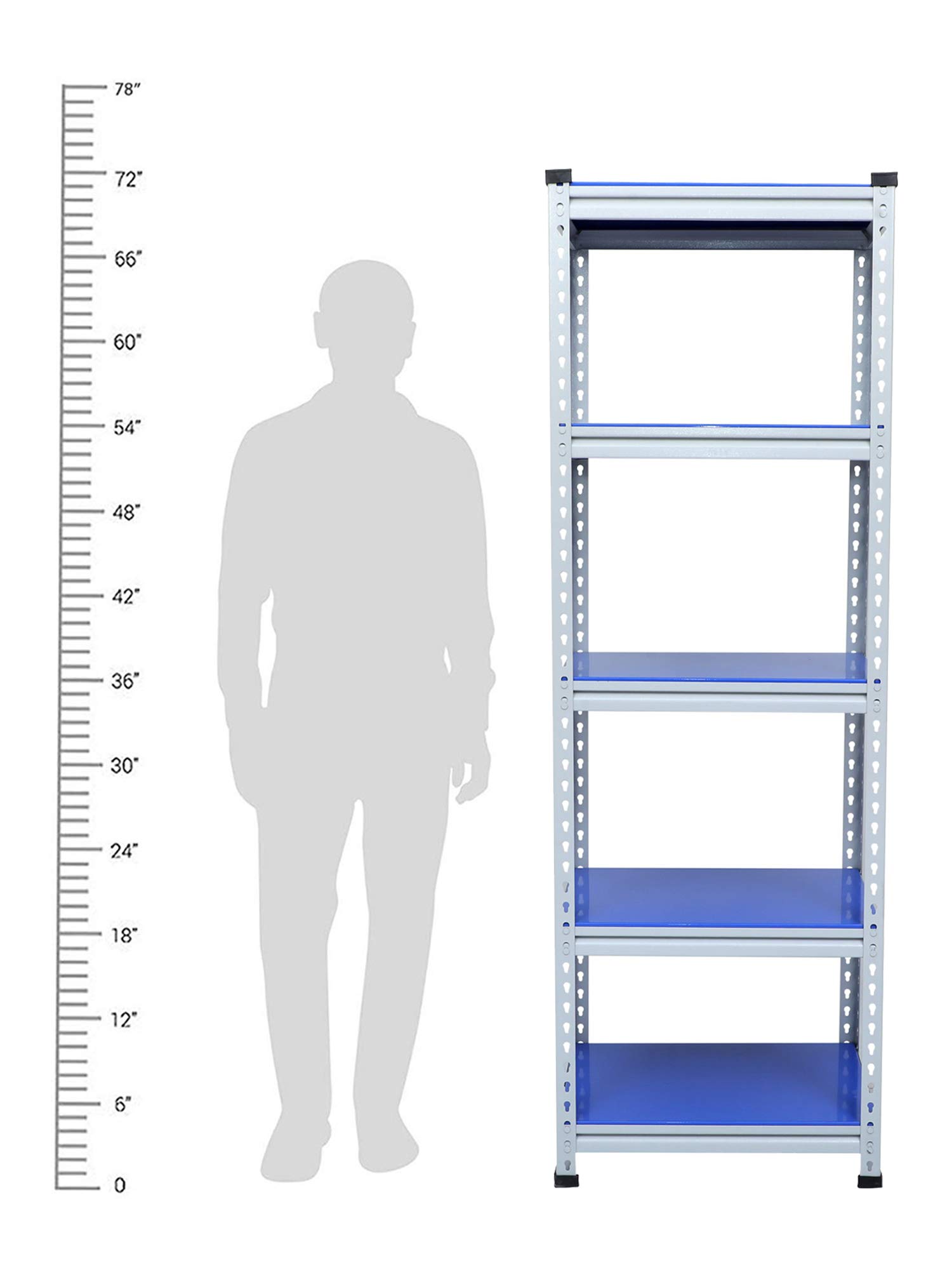 Mil Nil Industries is equipped with highly sophisticated machines supported by an enhanced system of quality analysis. We are always ahead with unmatched quality and durability. Our unique industrial & office Mil-Nil brand products are in various ranges with innovative designs introduced regularly through our reliable team of dealers. Our mission is to provide our customers best quality products with an accurate gauge and weight at a reasonable price. To help the buyer to choose the product sold by multiple sellers, we suggest few validation criteria, few checks to ensure the desired quality and accurate gauge has been received at buyer end. We have mentioned 5 shelves Boltless rack and gauge variation (18, 20, 22) with weight of each product in our every listed product to understand buyers that they are getting accurate gauge with accurate weight. While comparing rates of similar size products consider gauge with weight while deciding. This blue adjustable shelving unit allows you to customize the heights of each of your shelves, which hold up to 220 lbs each. And its versatility allows you to get organized in your kitchen, your garage, your basement… really anywhere.