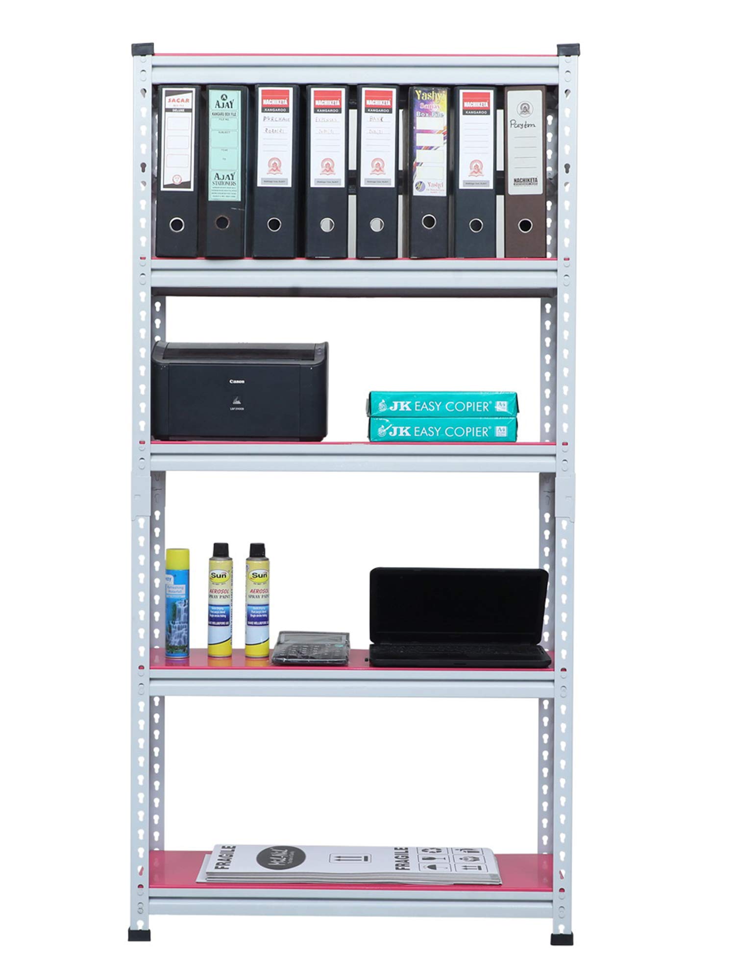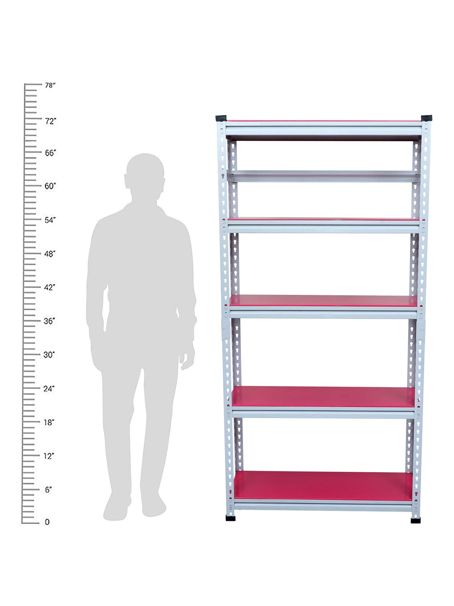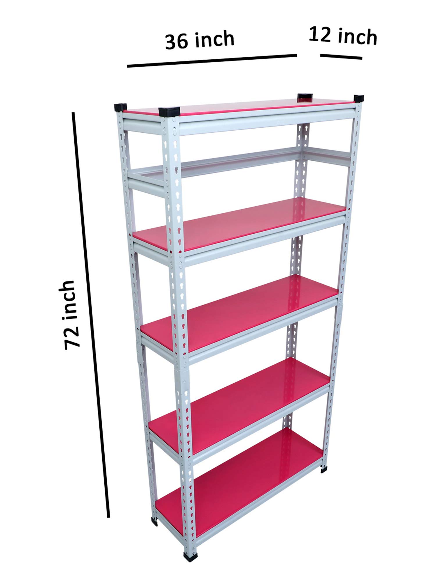 Item NameMil-Nil Boltless Prime CRC Sheet 72x36x12 Inch Multipurpose Storage Rack with 5 Shelves 20 Gauge_Pink
