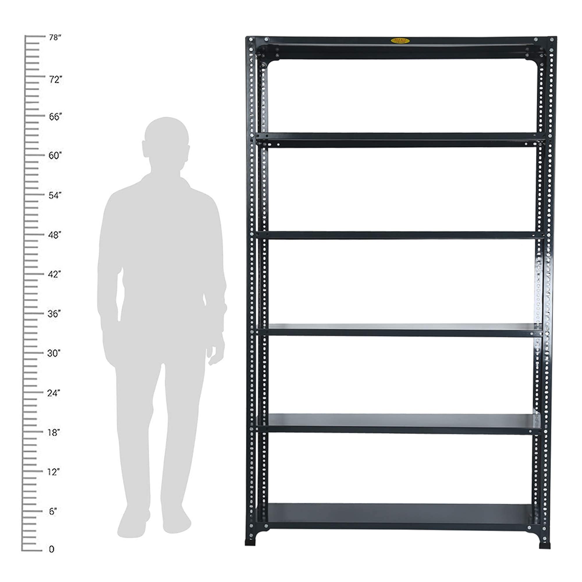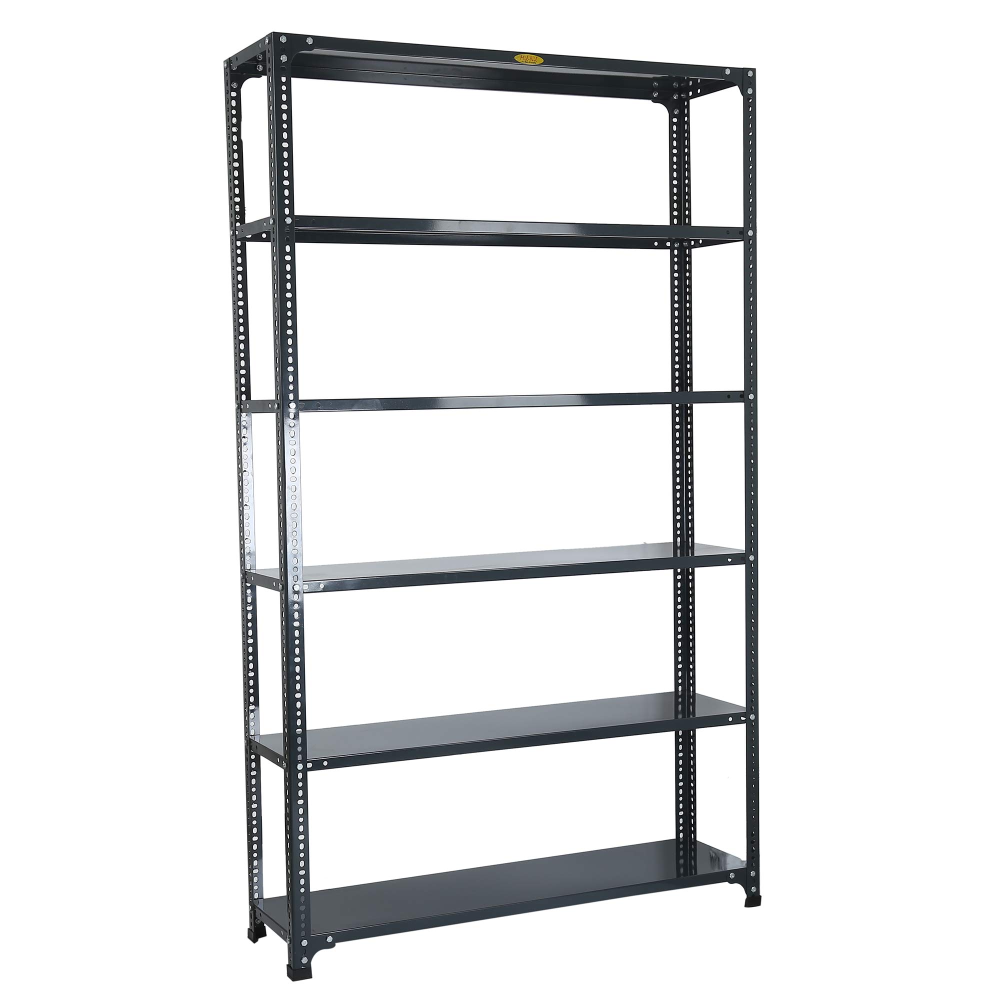Mil-Nil Multipurpose Prime CRC 24 Gauge Sheet 6 Shelf 16 Gauge Slotted Angle Glossy Rack (Grey, 78 x 47 x 12 Inch)
