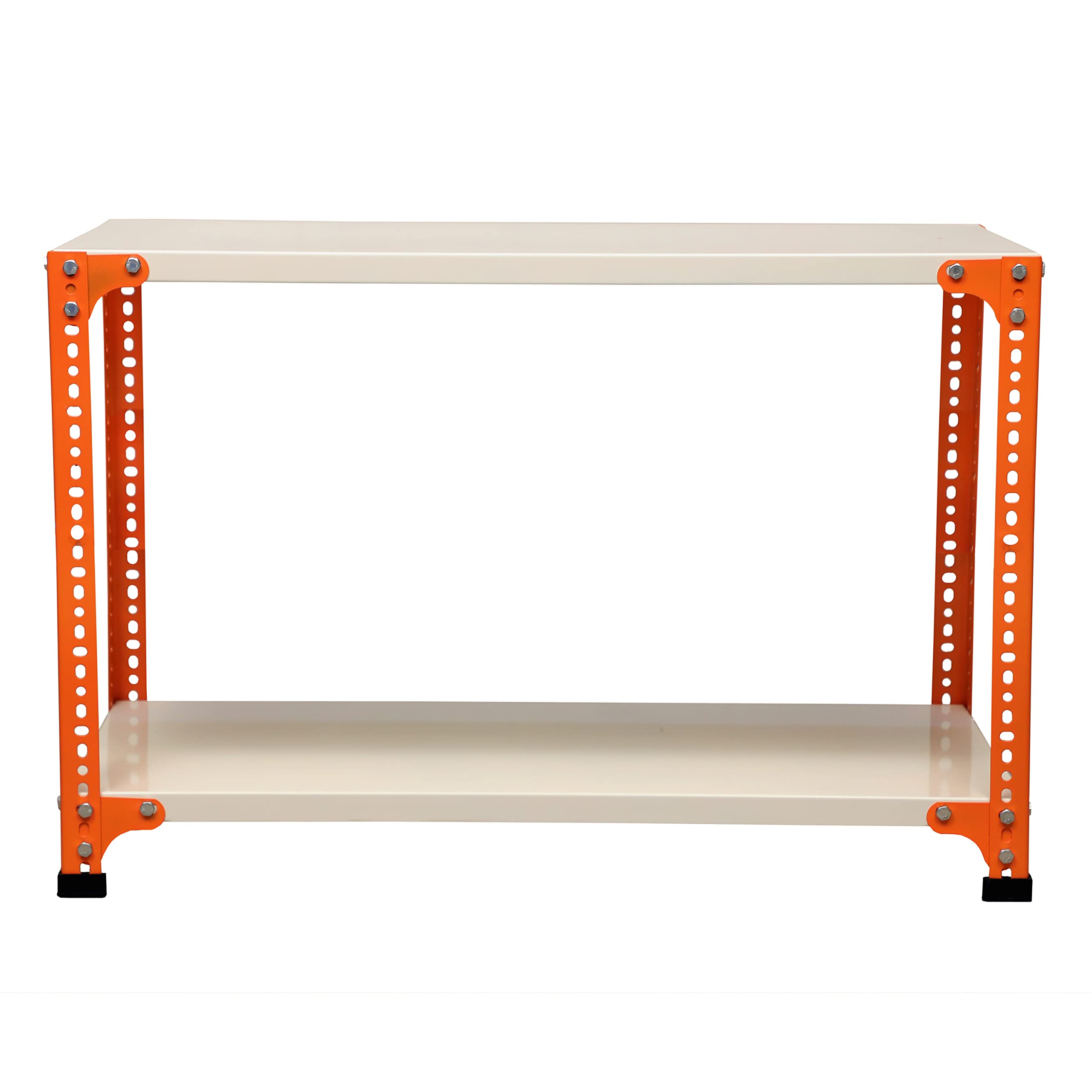 Mil-Nil Prime CRC Sheet 2 Shelf 22 Gauge Multipurpose Slotted Angle Rack | Adjustable Shelf Hight Powder Coated Rack for Home & Kitchen (24x36x12 Inch, 7 Kg, Orange/Ivory) 16 Gauge Angles