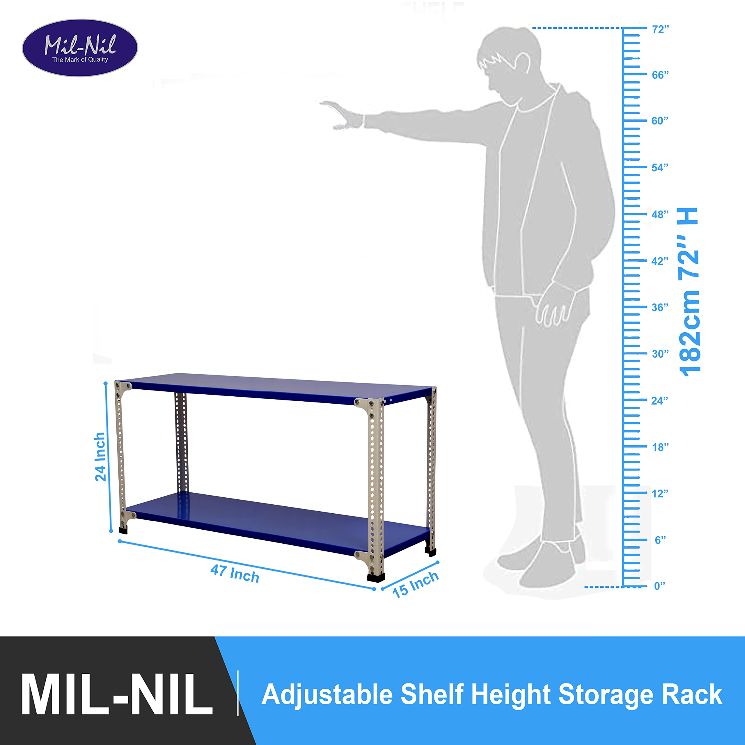 Item NameMil-Nil Prime CRC Sheet 2 Shelf 22 Gauge Multipurpose Slotted Angle Rack | Adjustable Shelf Hight Powder Coated Rack for Home & Kitchen (24x47x15 Inch, 9.2 Kg, Blue/White) 16 Gauge Angles