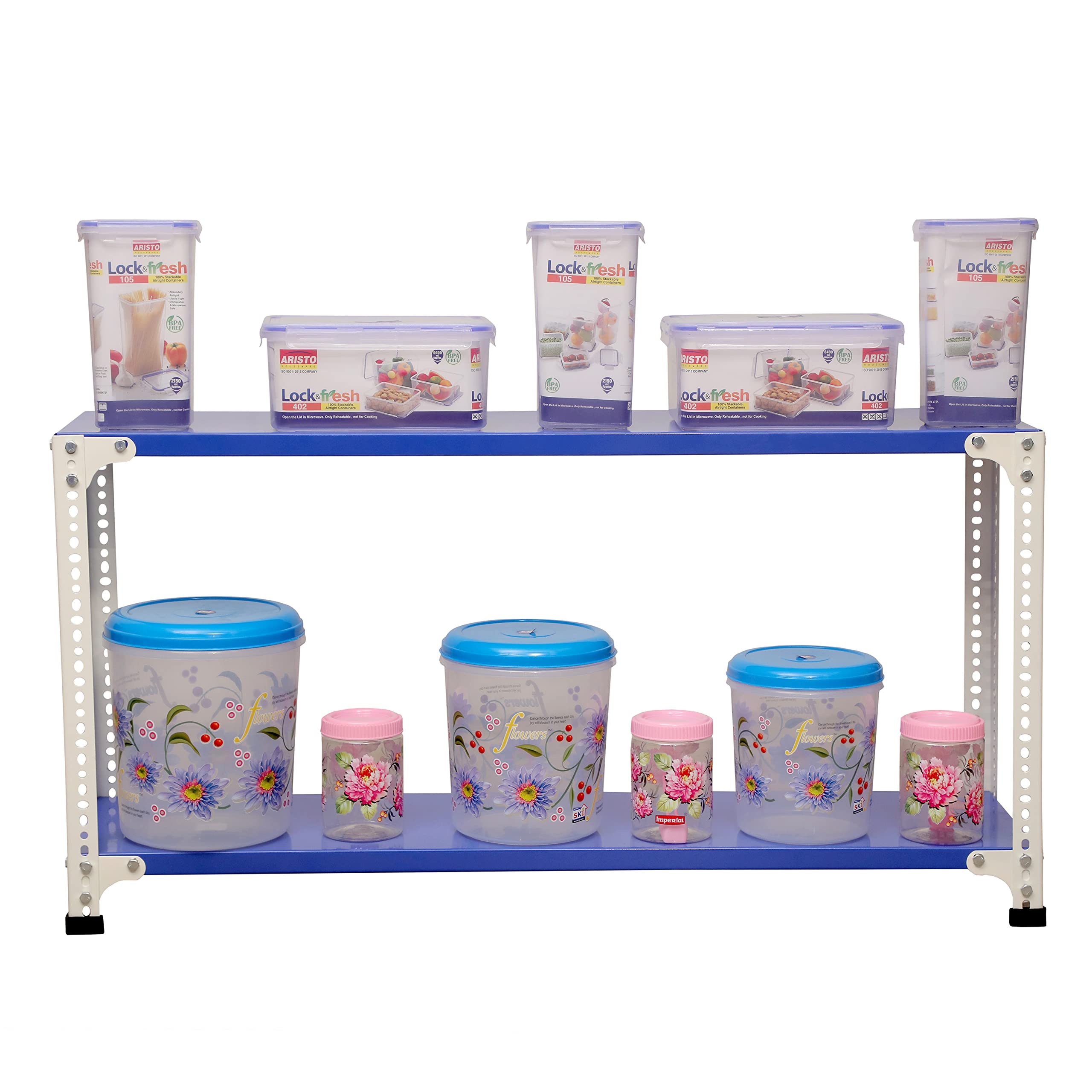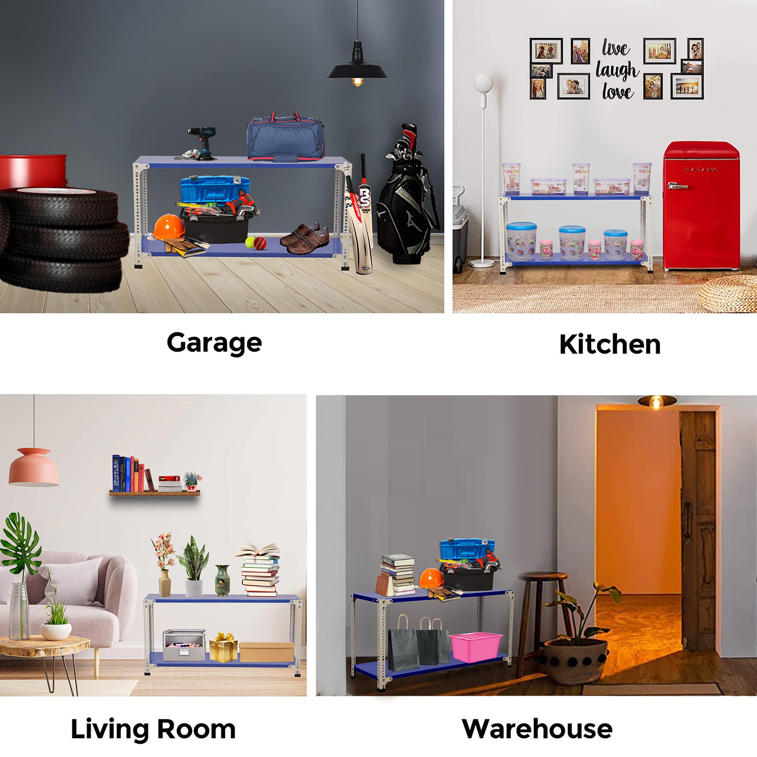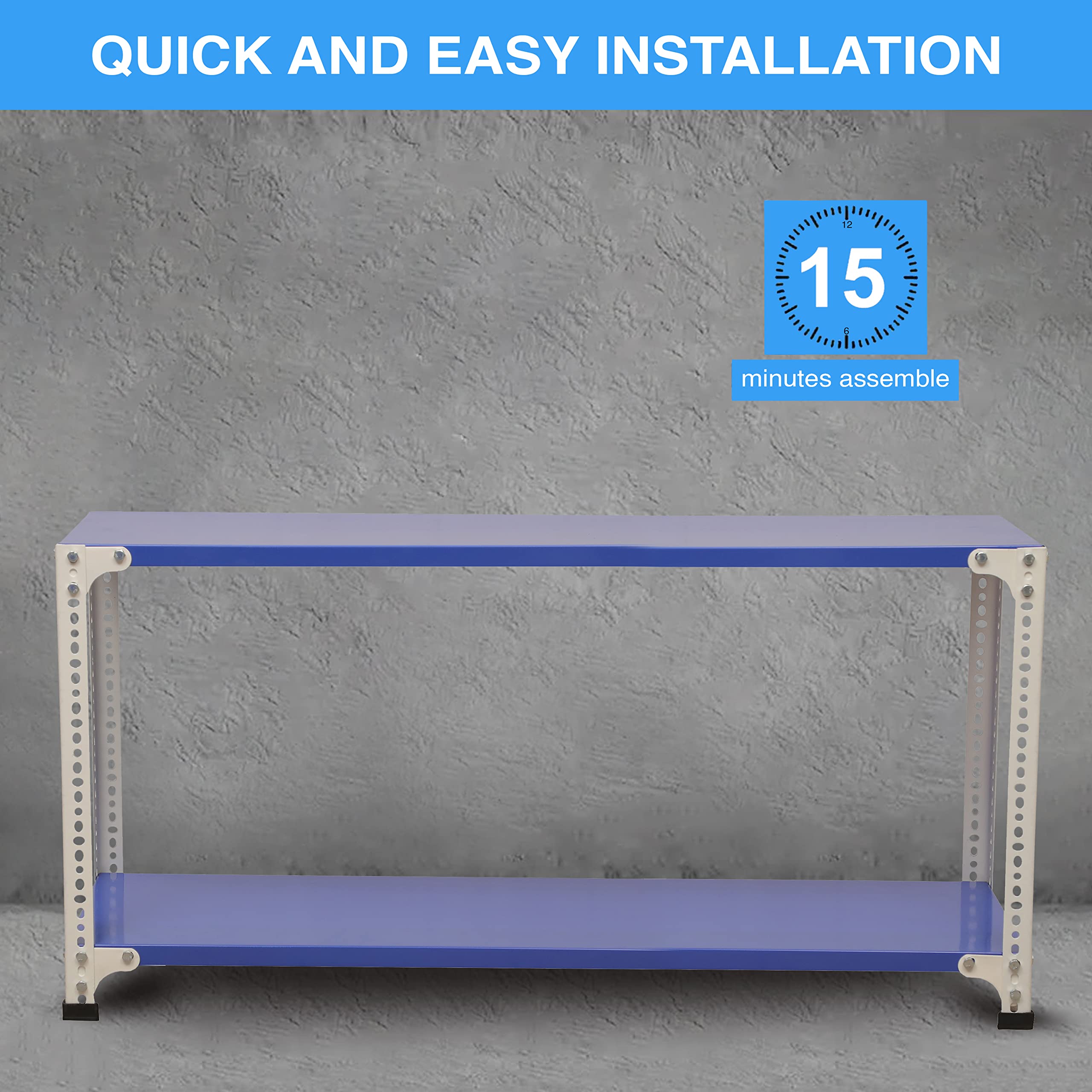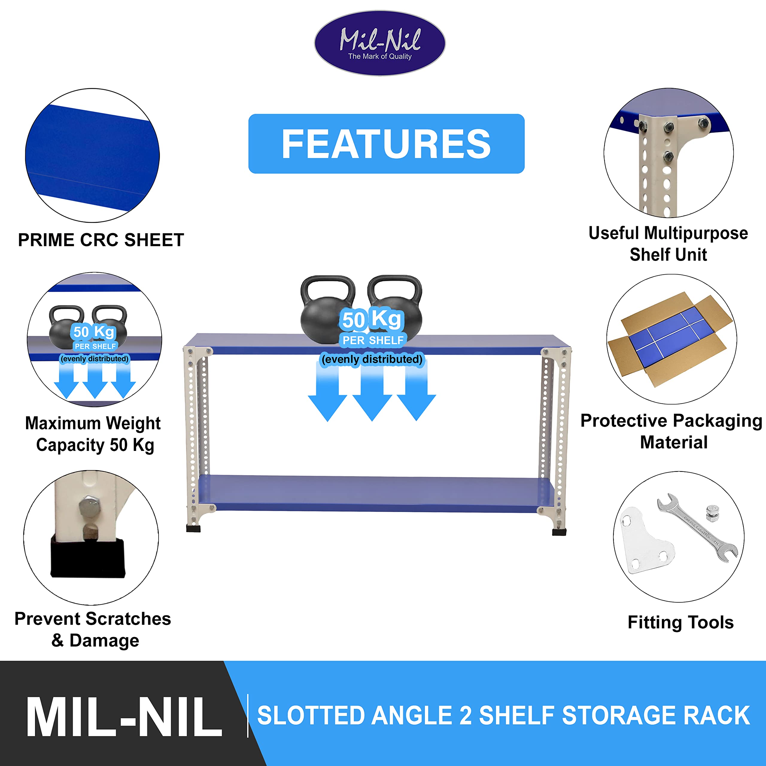 Mil-Nil Prime CRC Sheet 2 Shelf 22 Gauge Multipurpose Slotted Angle Rack | Adjustable Shelf Hight Powder Coated Rack for Home & Kitchen (24x47x15 Inch, 9.2 Kg, Blue/White) 16 Gauge Angles