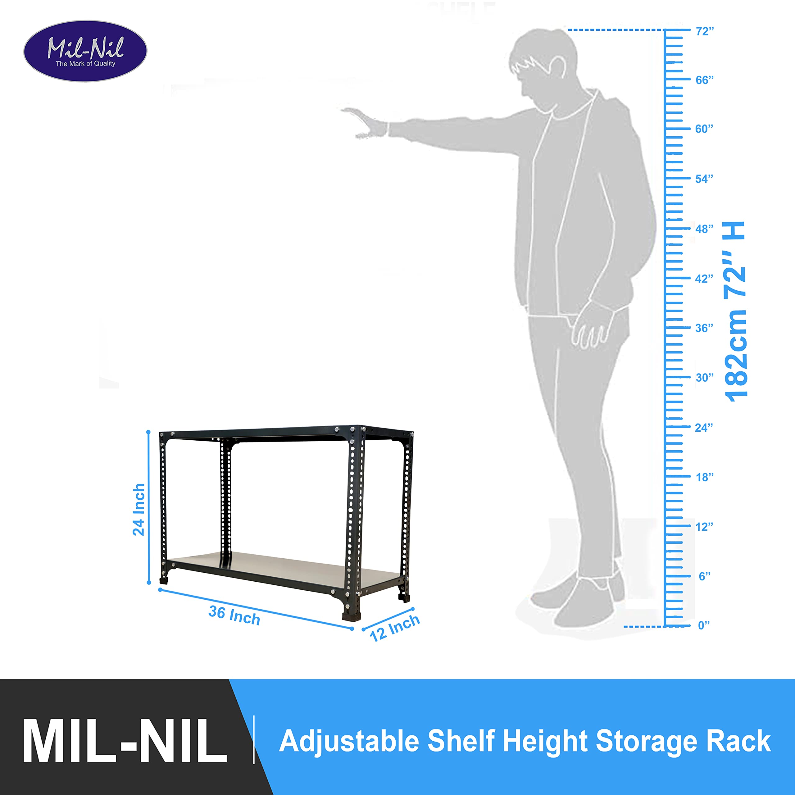 Item NameMil-Nil Prime CRC Sheet 2 Shelf 22 Gauge Multipurpose Slotted Angle Rack | Adjustable Shelf Hight Rack for Home & Kitchen (24x36x12 Inch, 7 Kg, Grey) 16 Gauge Angles