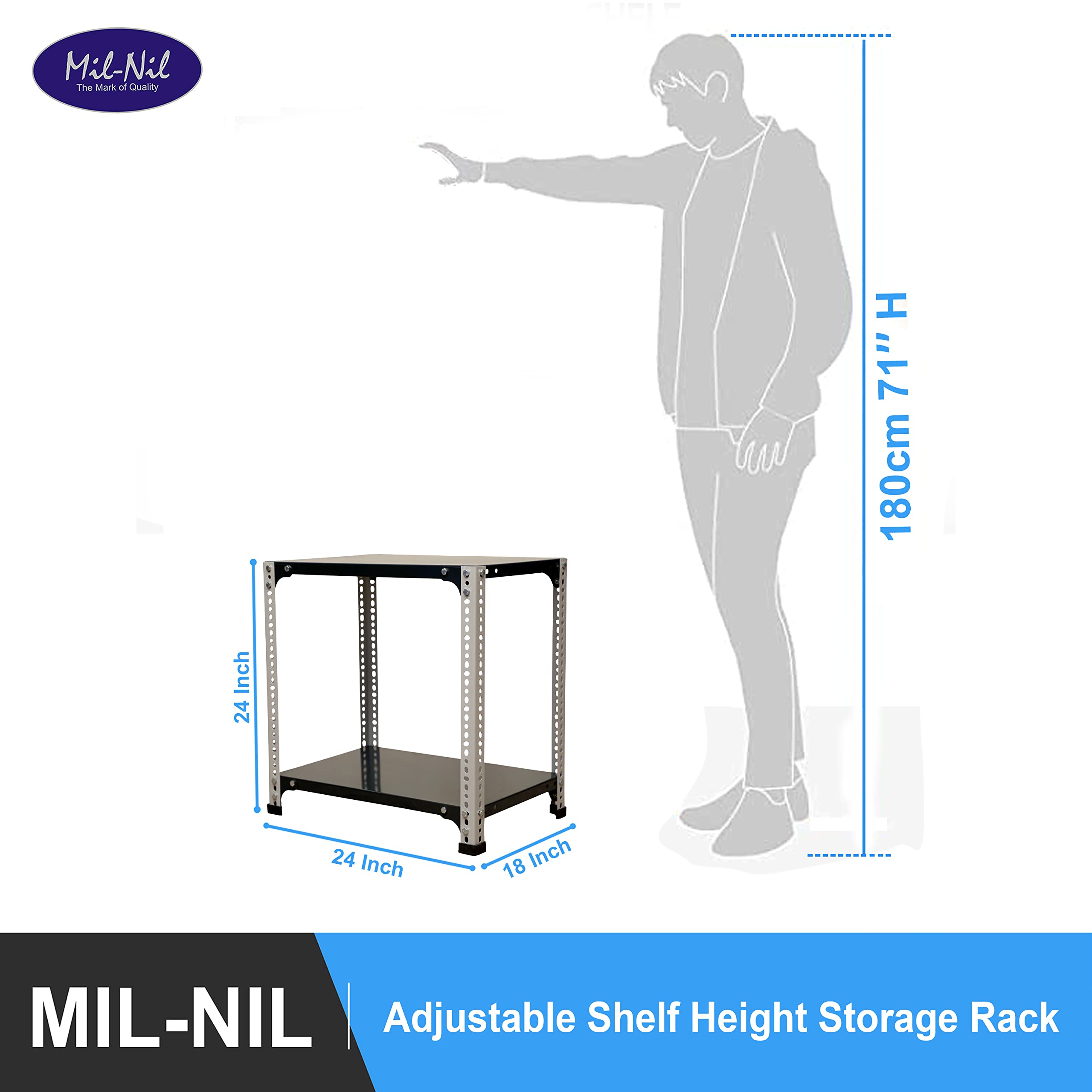 Mil-Nil Prime CRC Sheet 2 Shelf 24 Gauge Multipurpose Slotted Angle Rack | Adjustable Shelf Hight Rack for Home & Kitchen (24x24x18 Inch, 6.2 Kg, Grey/Havels) 16 Gauge Angles