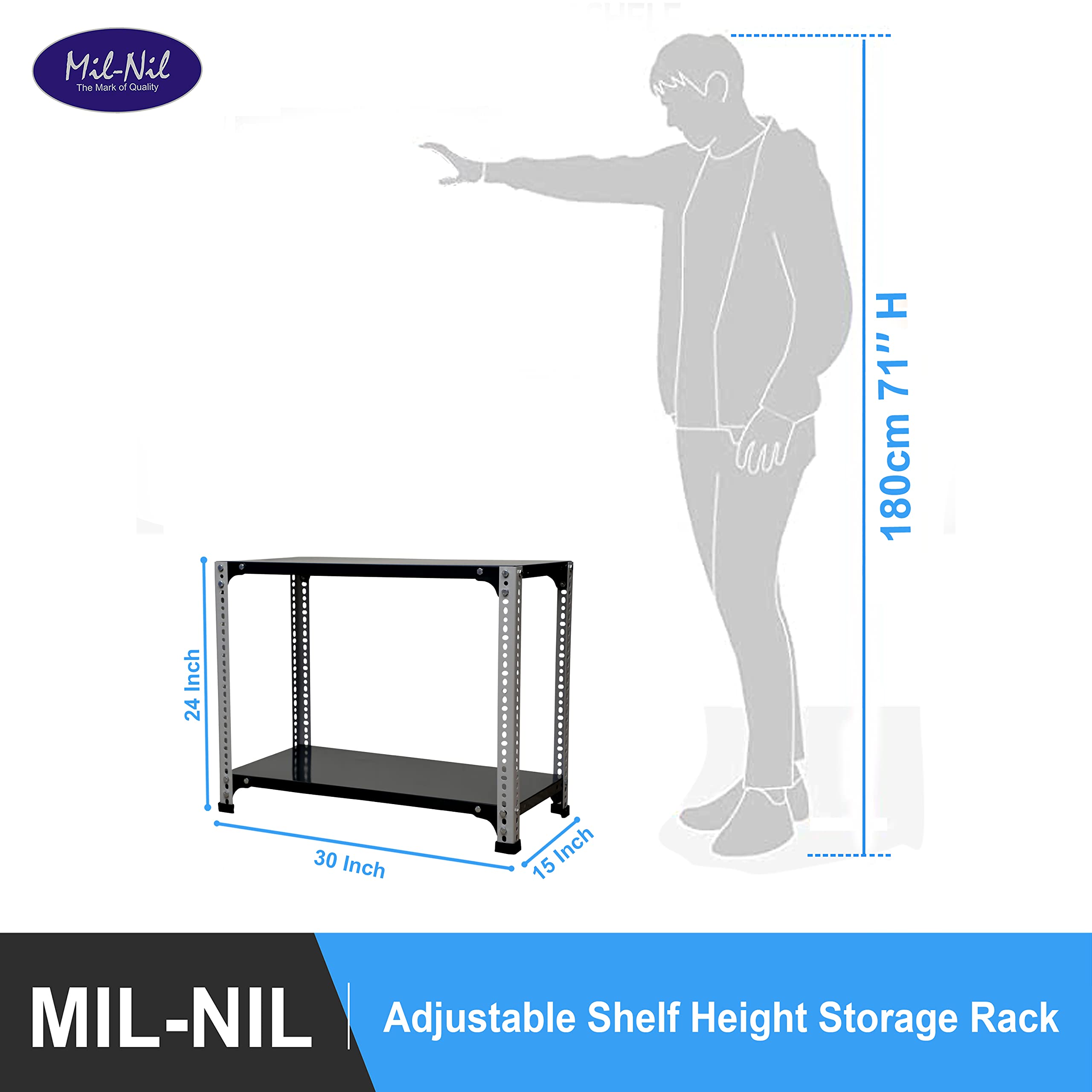Item NameMil-Nil Prime CRC Sheet 2 Shelf 24 Gauge Multipurpose Slotted Angle Rack | Adjustable Shelf Hight Rack for Home & Kitchen (24x30x15 Inch, 6.4 Kg, Grey/Havels) 16 Gauge Angles