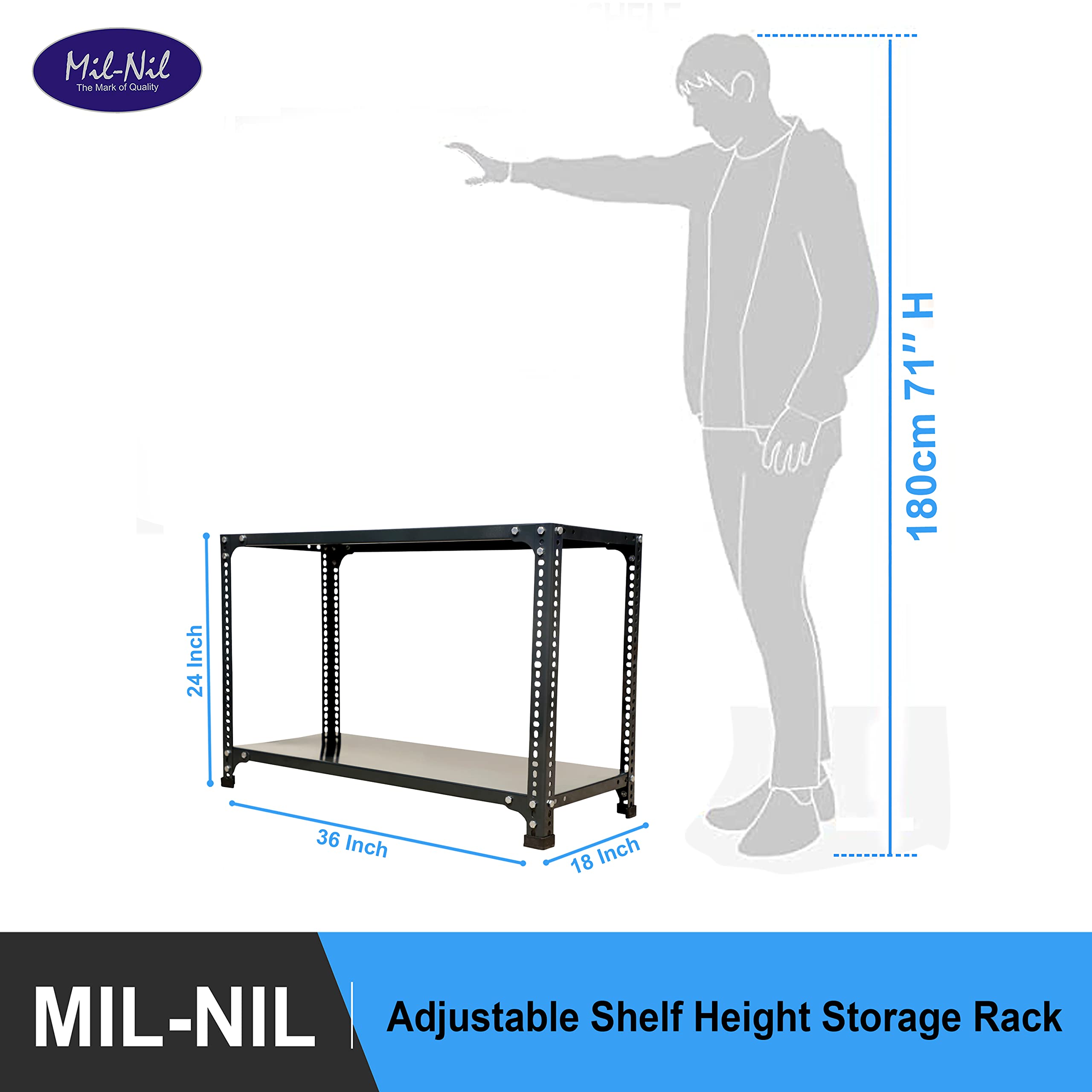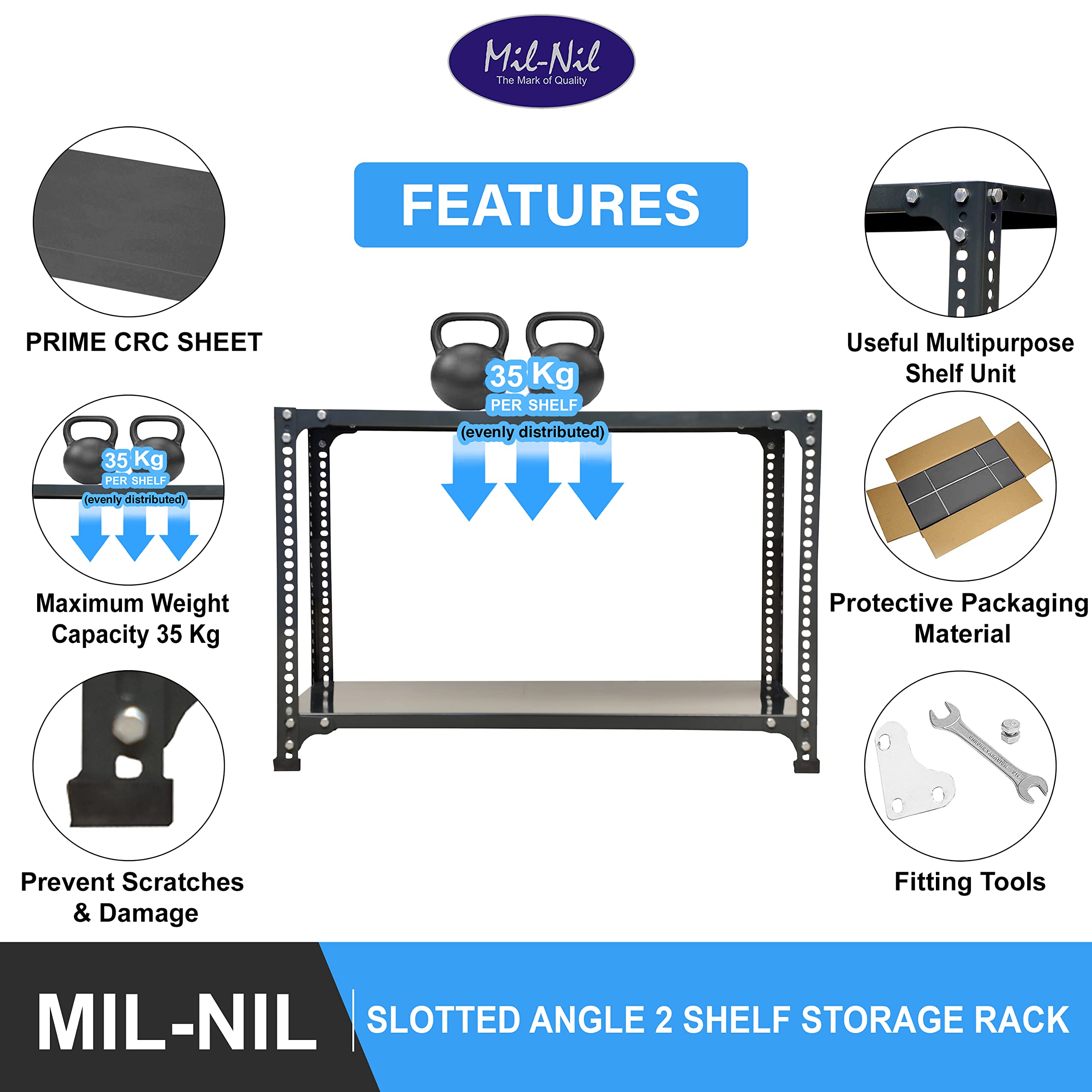 Mil-Nil Prime CRC Sheet 2 Shelf 24 Gauge Multipurpose Slotted Angle Rack | Adjustable Shelf Hight Rack for Home & Kitchen (24x36x18 Inch, 8 Kg, Grey) 16 Gauge Angles