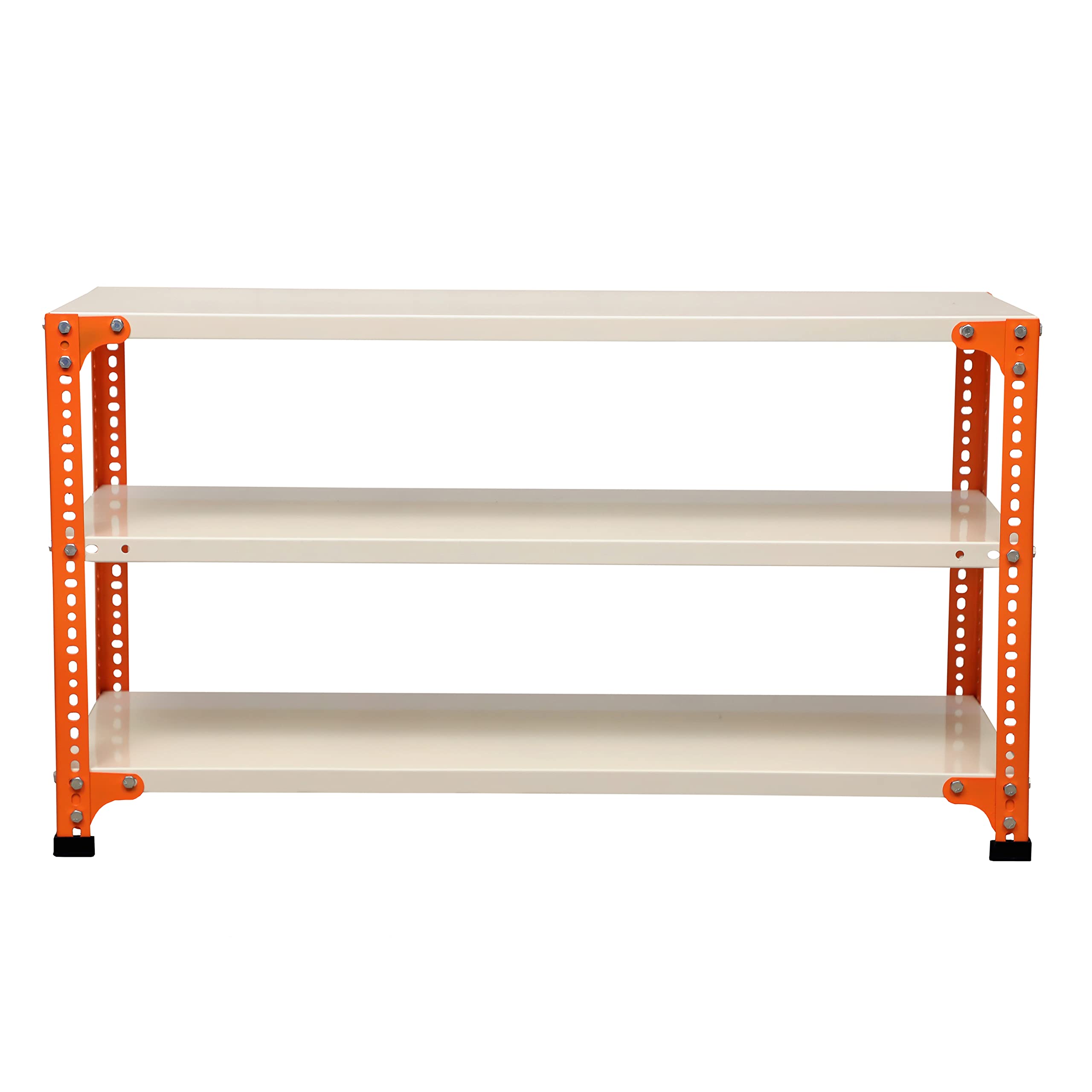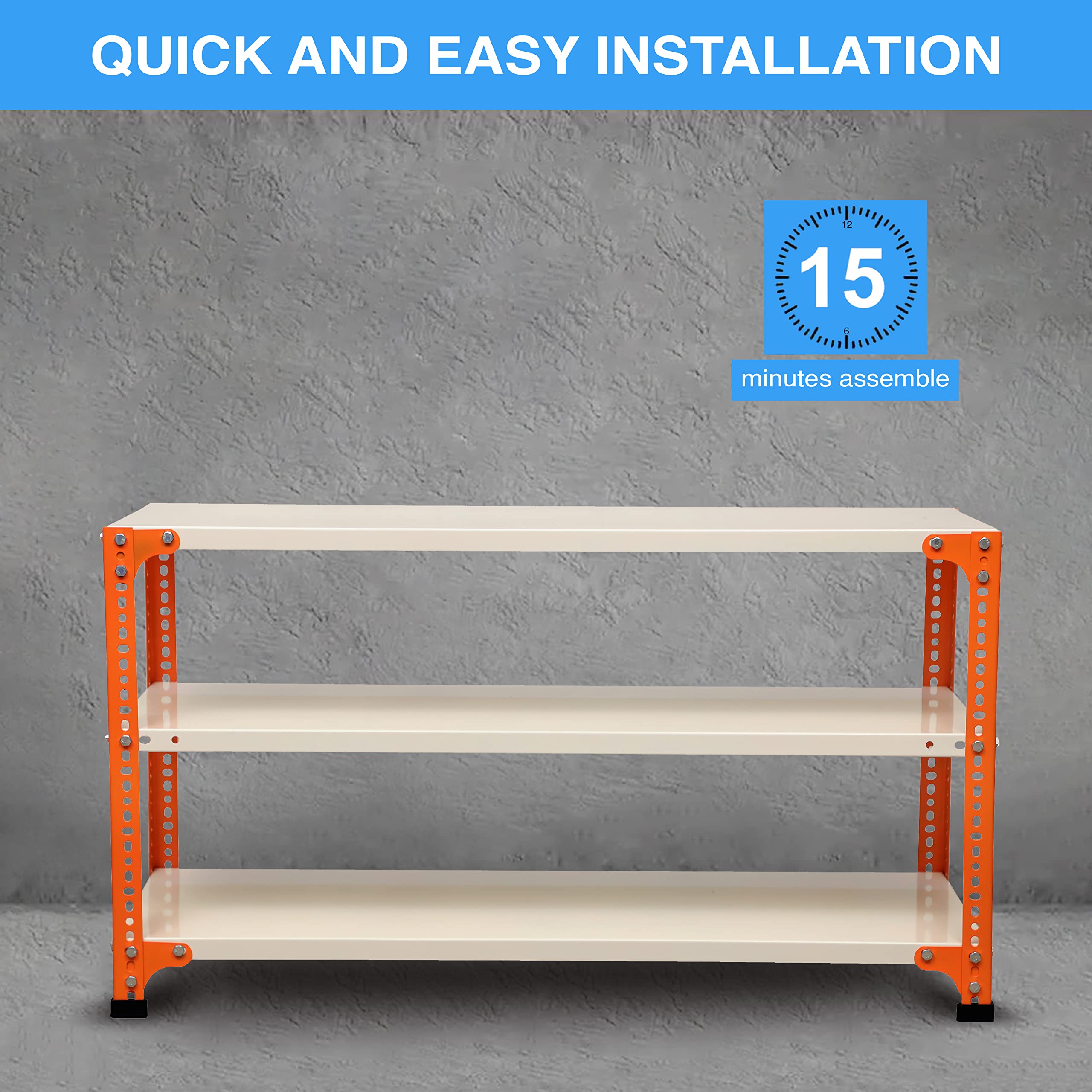 Mil-Nil Prime CRC Sheet 3 Shelf 22 Gauge Multipurpose Slotted Angle Rack | Adjustable Shelf Hight Powder Coated Rack for Home & Kitchen (24x47x12 Inch Orange/Ivory) 16 Gauge Angles