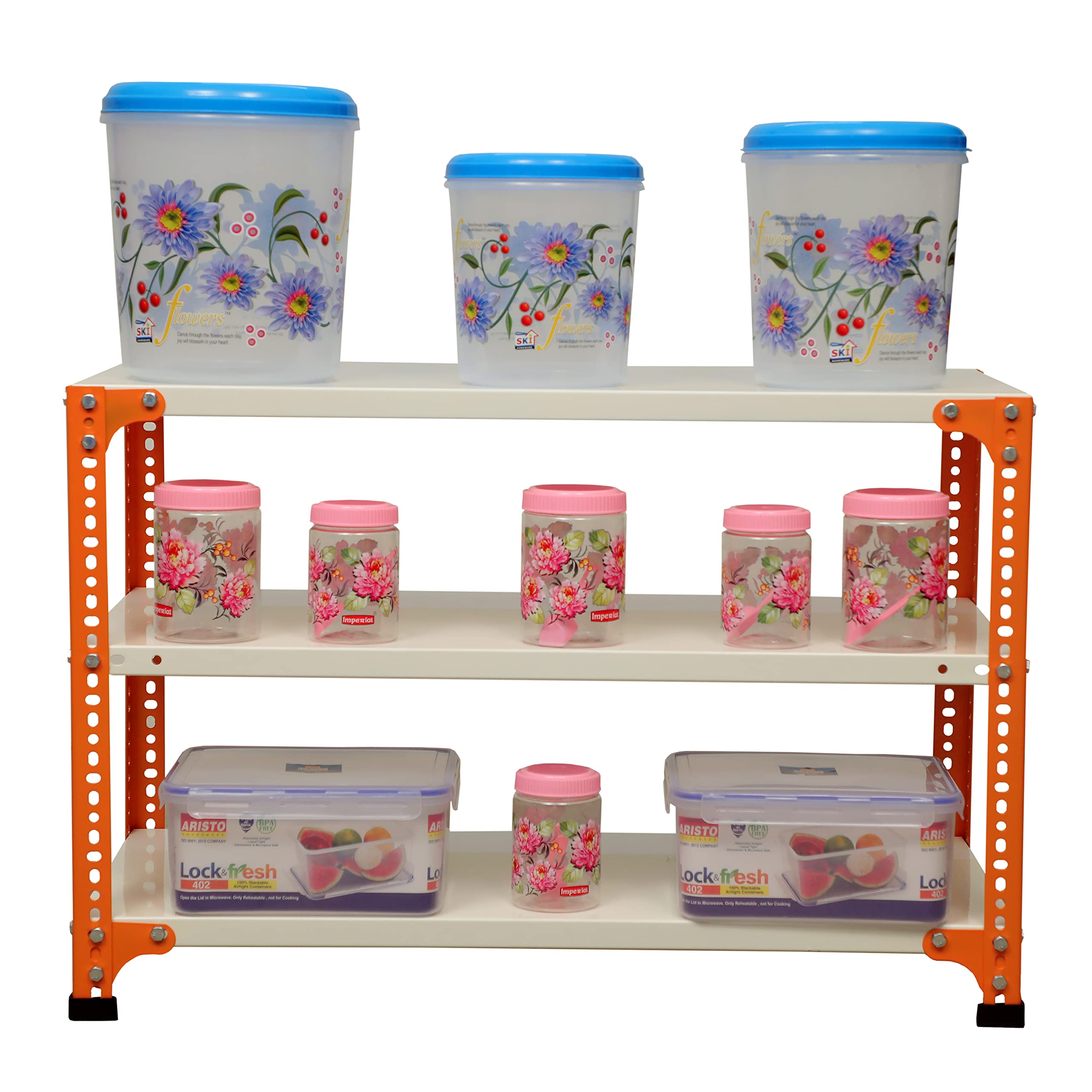 Keywords mil nil slotted angle rack slotted angle rack for home kitchen racks and shelves for storage kitchen rack adjustable industrial racks and shelves adjustable industrial storage rack 3 SELF 24 GAUGE SPN-SELHC ORANGE/IVORY