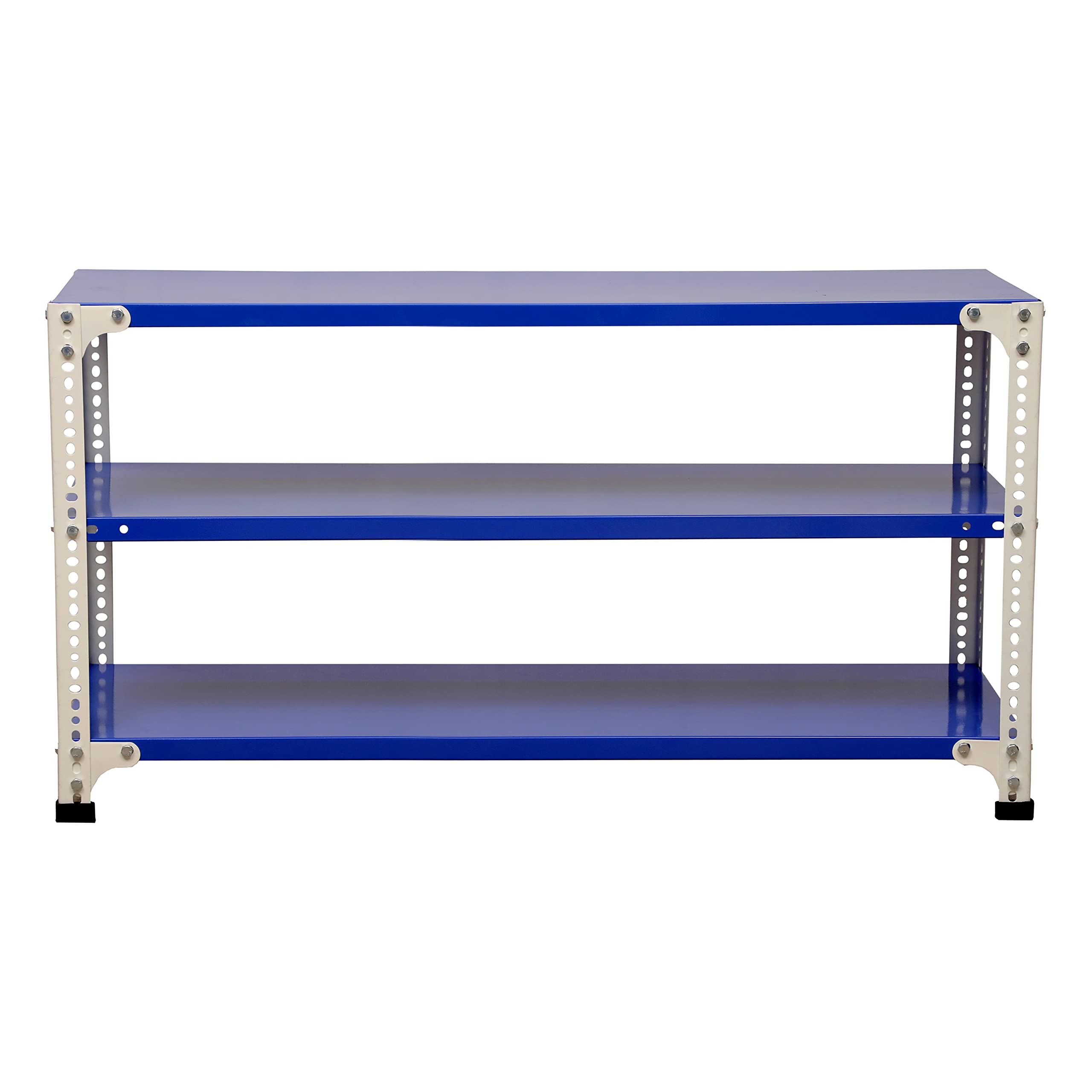 Mil-Nil Prime CRC Sheet 3 Shelf 24 Gauge Multipurpose Slotted Angle Rack | Adjustable Shelf Hight Powder Coated Rack for Home & Kitchen (24x47x12 Inch, 9.6 Kg, Blue/White) 16 Gauge Angles