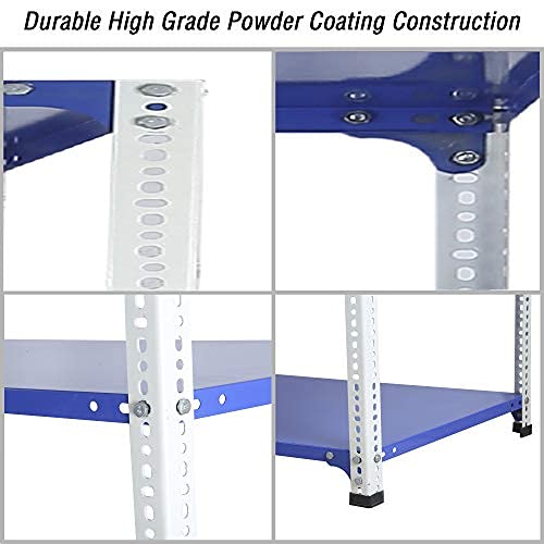 Mil-Nil Prime CRC Sheet 36x30x15 Inch Multipurpose Storage, Adjustable Shelf, Slotted Angle Rack with 3 Shelves 22 Gauge_Blue/White 16 Gauge Angles
