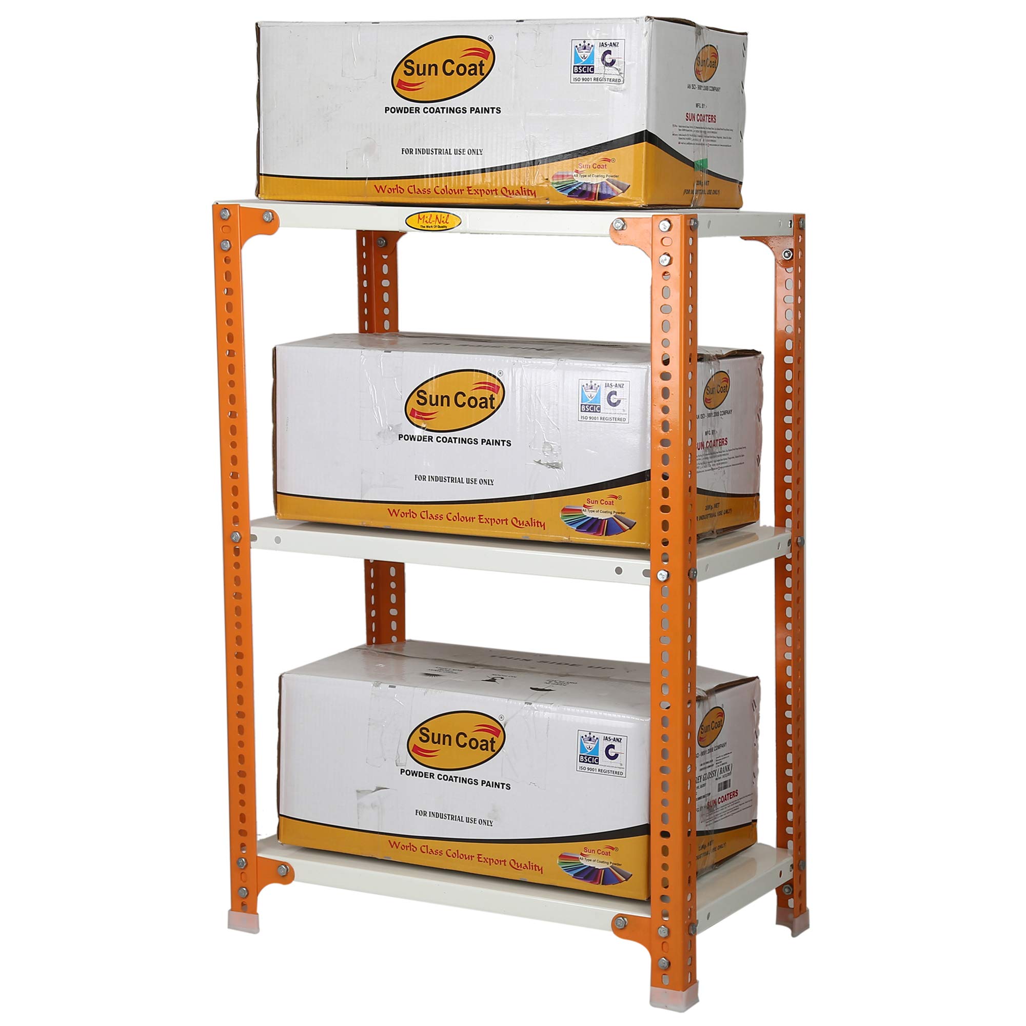 Item NameMil-Nil Prime CRC Sheet 36x30x15 Inch Multipurpose Storage, Adjustable Shelf, Slotted Angle Rack with 3 Shelves 22 Gauge_Orange/Ivory 16 Gauge Angles