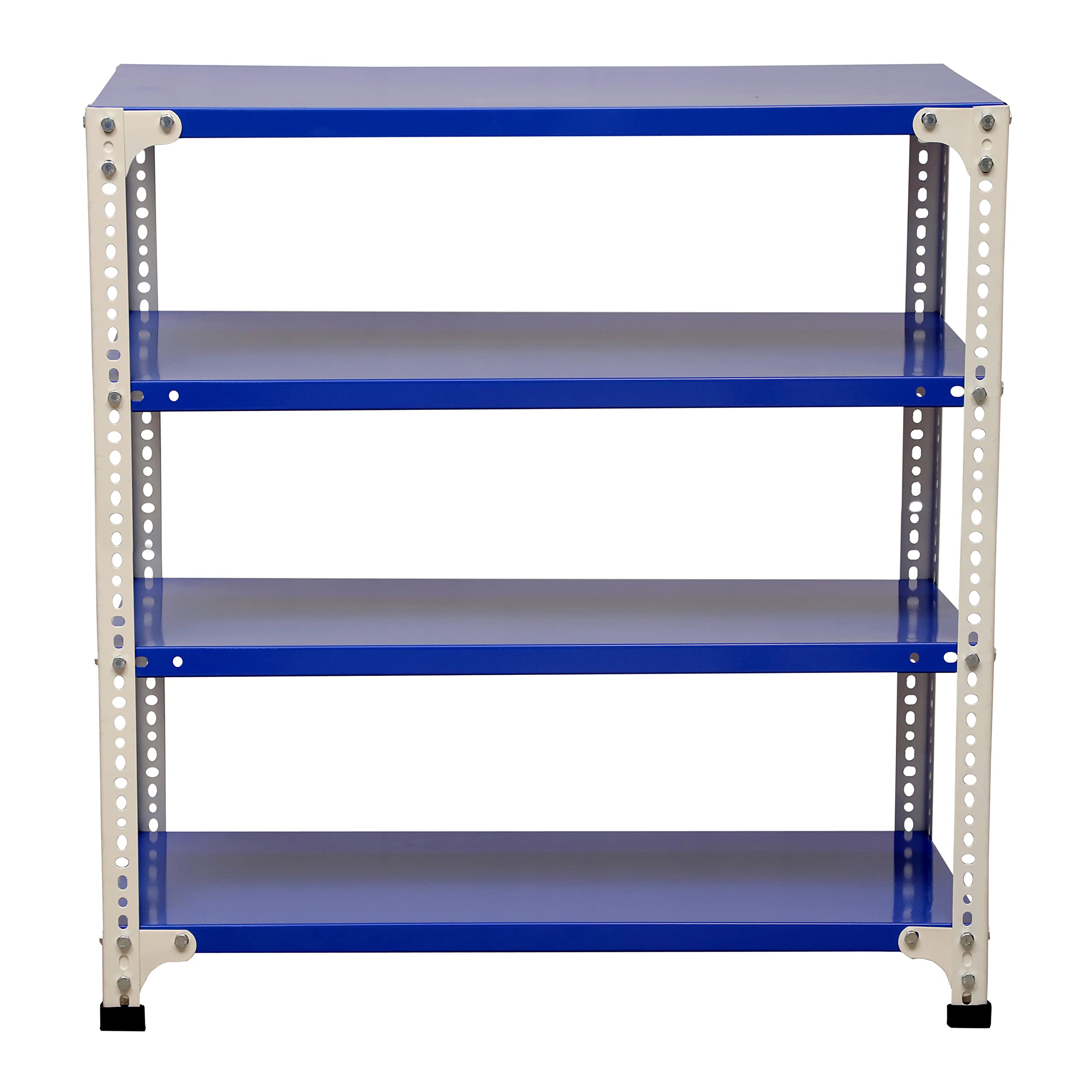 Mil-Nil Prime CRC Sheet 4 Shelf 24 Gauge Multipurpose Slotted Angle Rack | Adjustable Shelf Hight Rack for Home & Kitchen (36x36x12 Inch, 11.6 Kg, Blue/Whie) 16 Gauge Angles
