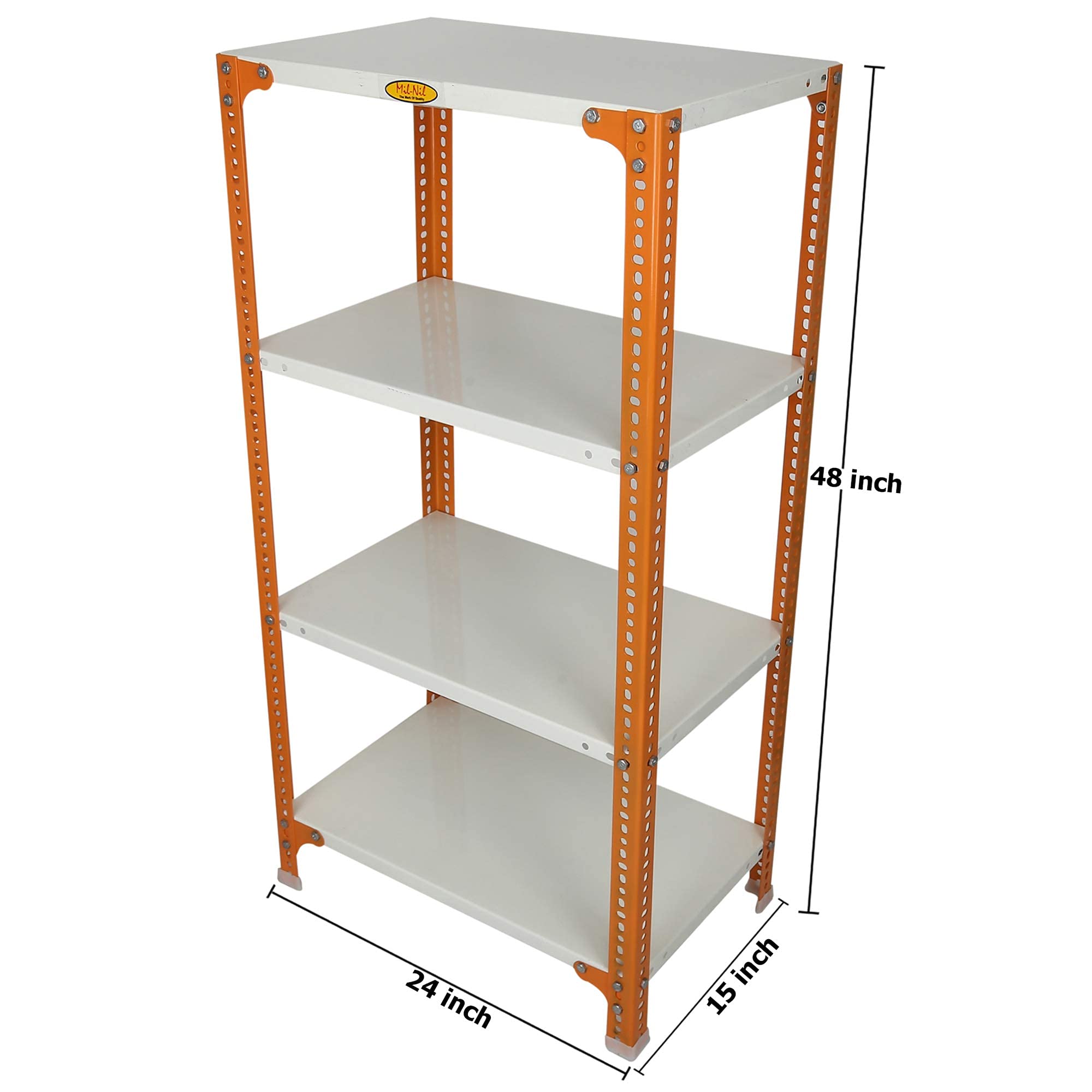 Item NameMil-Nil Prime CRC Sheet 4 Shelf Multipurpose Slotted Angle Rack, 48 x 24 x 15 Inch (48 x 24 x 15, Orange-Ivory) 16 Gauge Angles