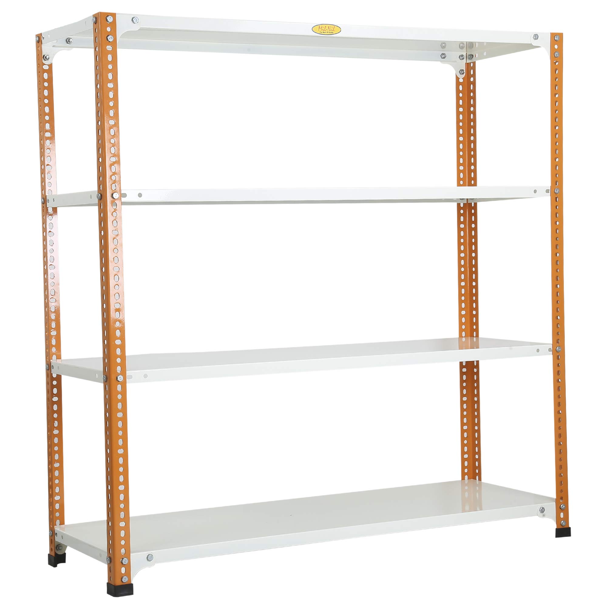Mil-Nil Prime CRC Sheet 4 Shelf Multipurpose Slotted Angle Rack, 48 x 47 x 15 Inch, 20 Gauge (Orange/Ivory) Powder Coated 14 Gauge Angles
