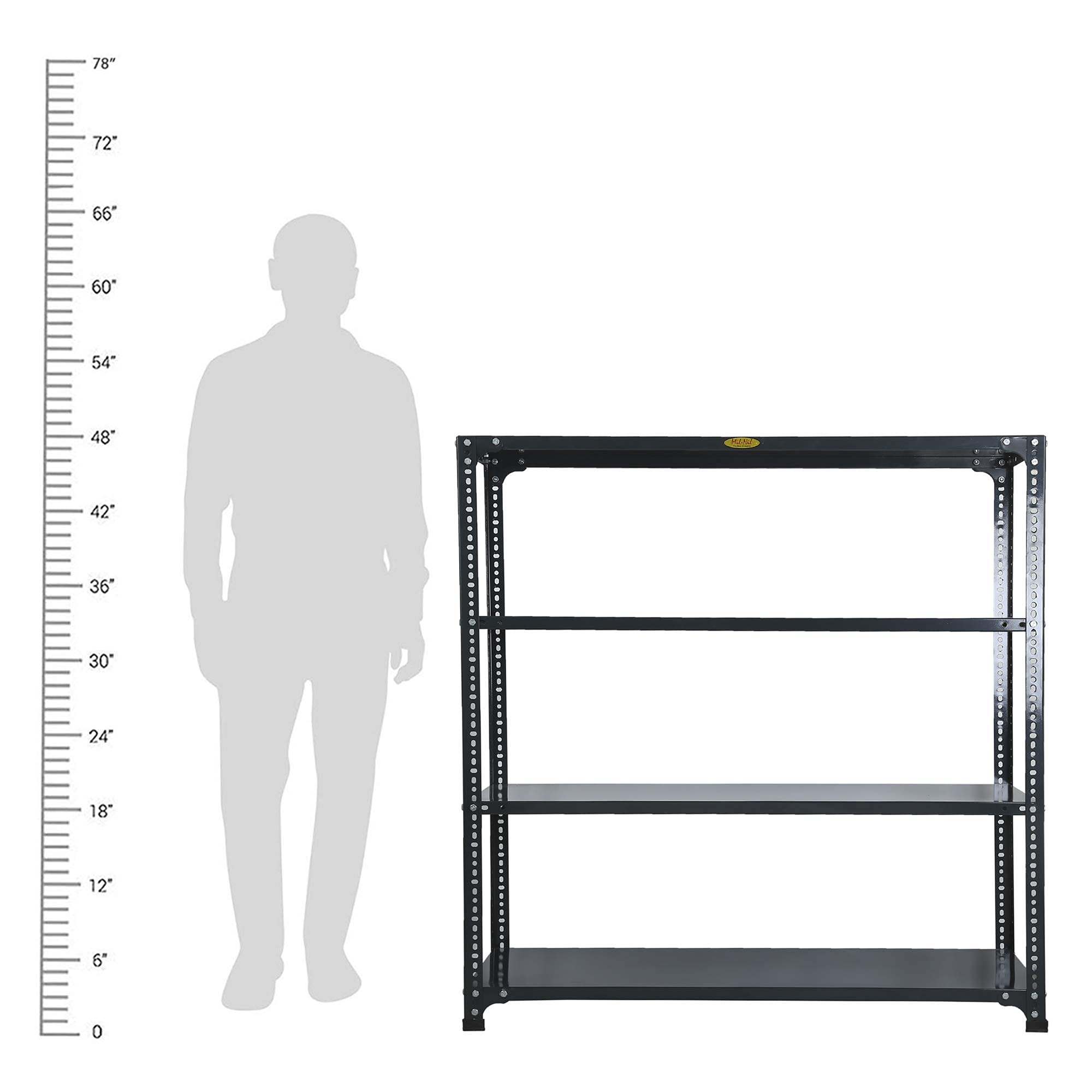 Mil-Nil Prime CRC Sheet 4 Shelf Multipurpose Slotted Angle Rack, 48 x 47 x 18 Inch, 18 Gauge (Grey) 14 Gauge Angles