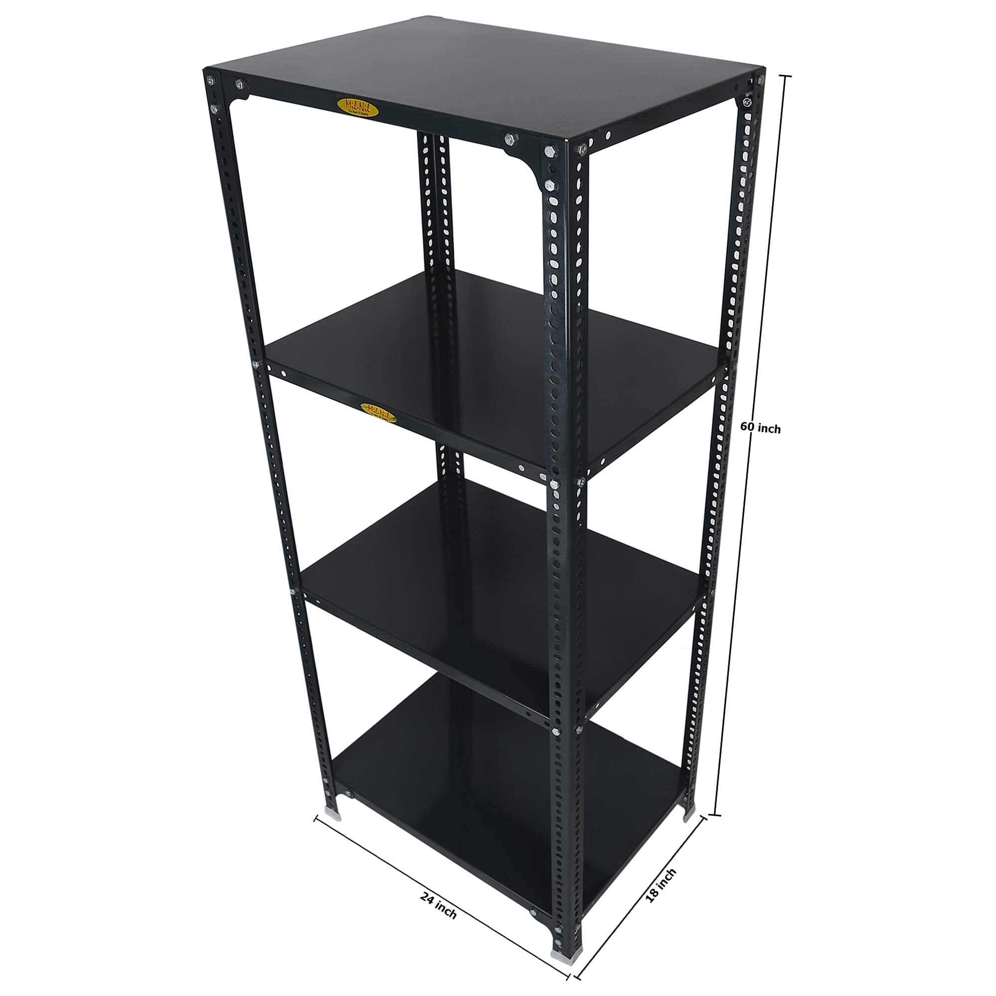Item NameMil-Nil Prime CRC Sheet 4 Shelf Multipurpose Slotted Angle Rack, 60 x 24 x 18 Inch (Grey) 16 Gauge Angles