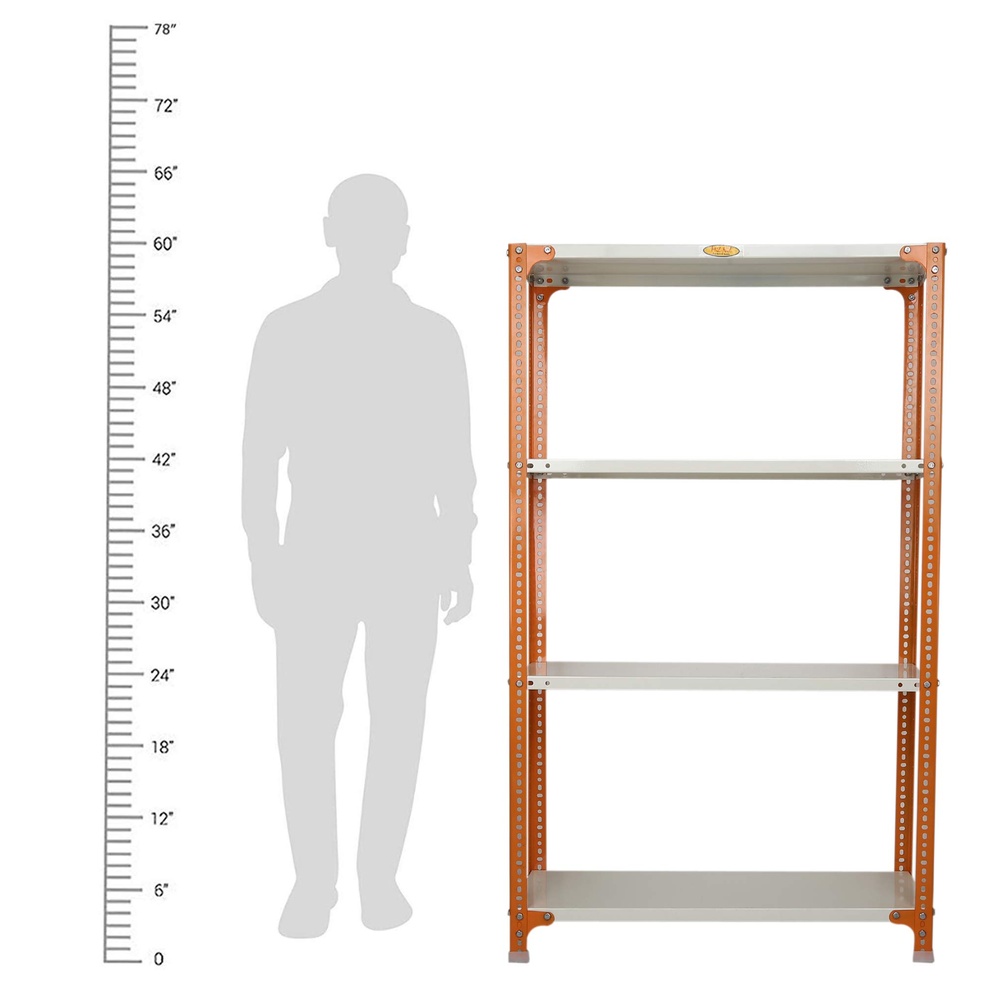 Item NameMil-Nil Prime CRC Sheet 4 Shelf Multipurpose Slotted Angle Rack, 60 x 36 x 12 Inch, 18 Gauge [(Orange-Ivory) Powder Coating] 14 Gauge Angles