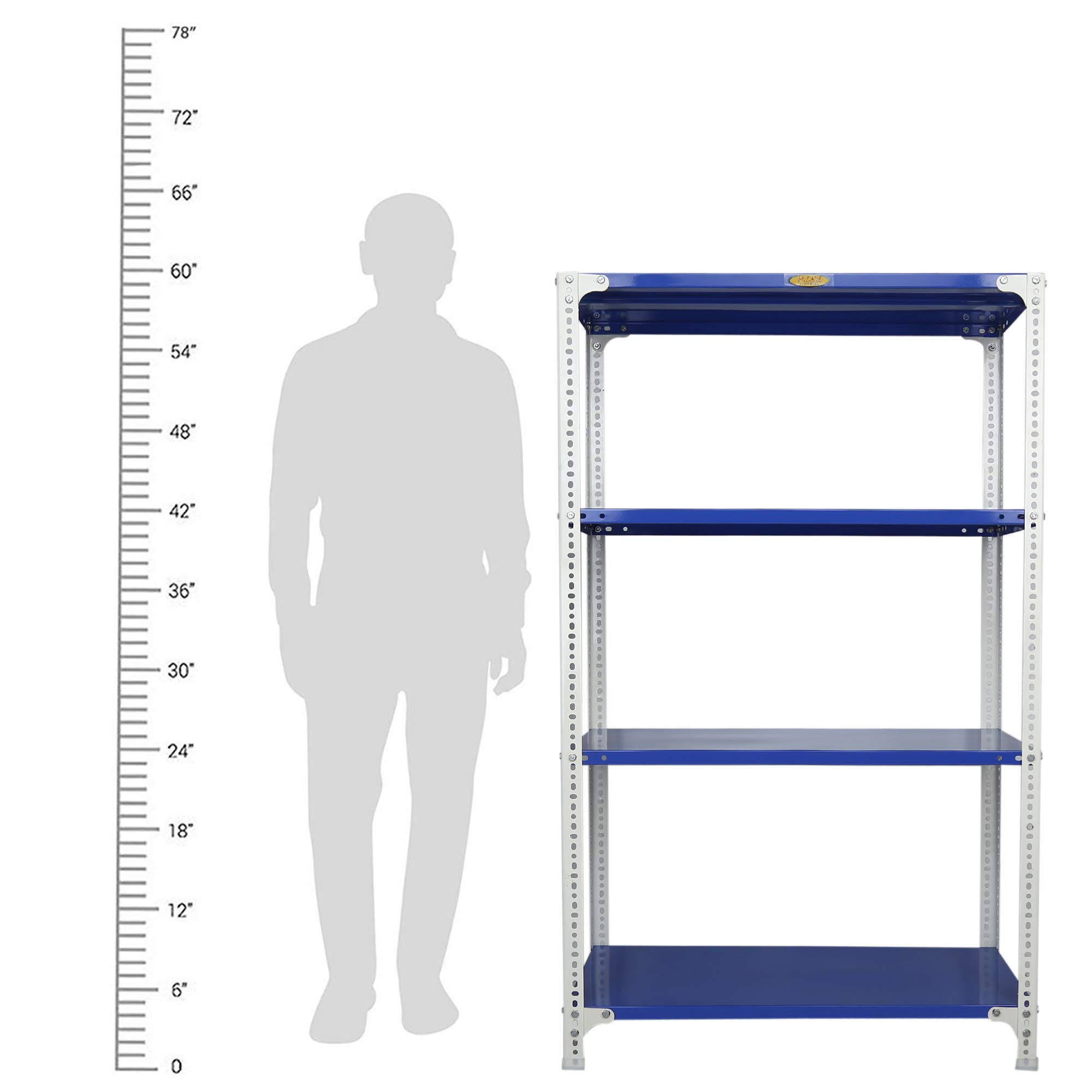 Item NameMil-Nil Prime CRC Sheet 4 Shelf Multipurpose Slotted Angle Rack, 60 x 36 x 18 Inch, 20 Gauge [(Blue-White) Powder Coating] 14 Gauge Angles