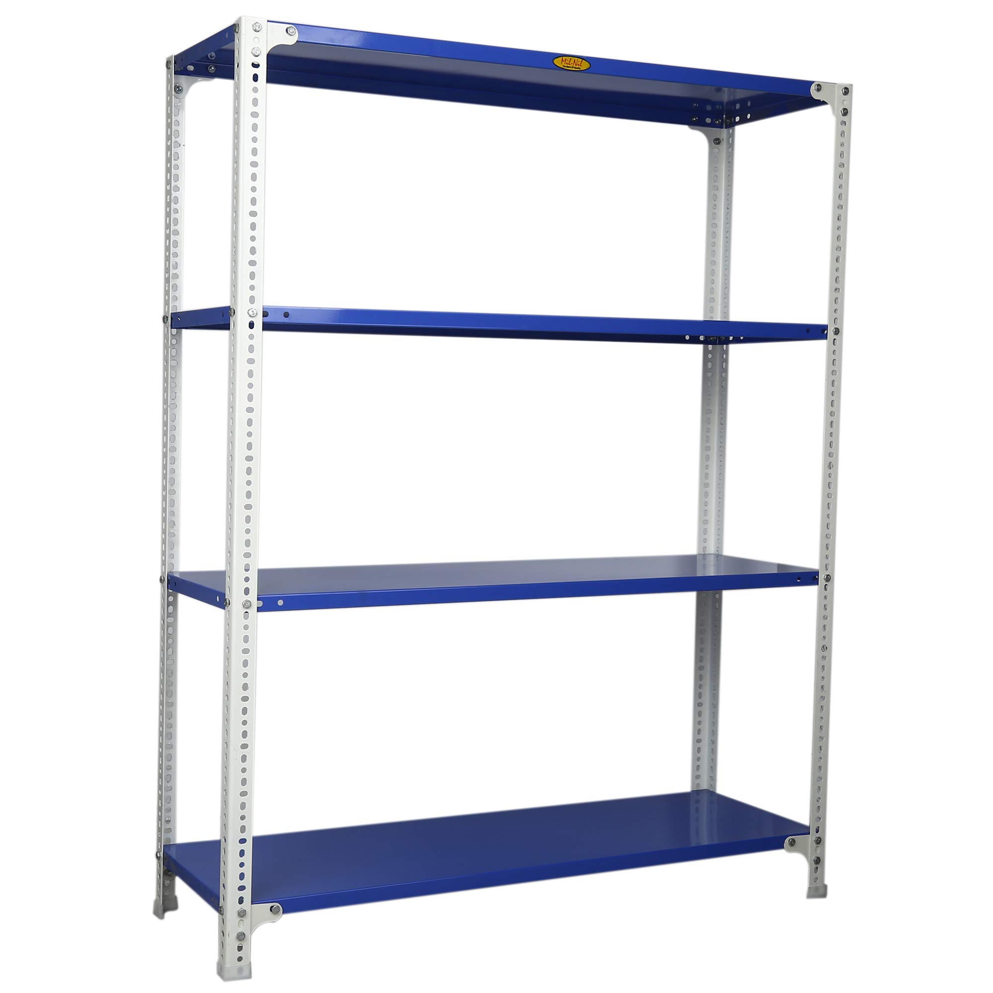 Item NameMil-Nil Prime CRC Sheet 4 Shelf Multipurpose Slotted Angle Rack, 60 x 47 x 15 Inch, 18 Gauge [(Blue-White) Powder Coating] 14 Gauge Angles