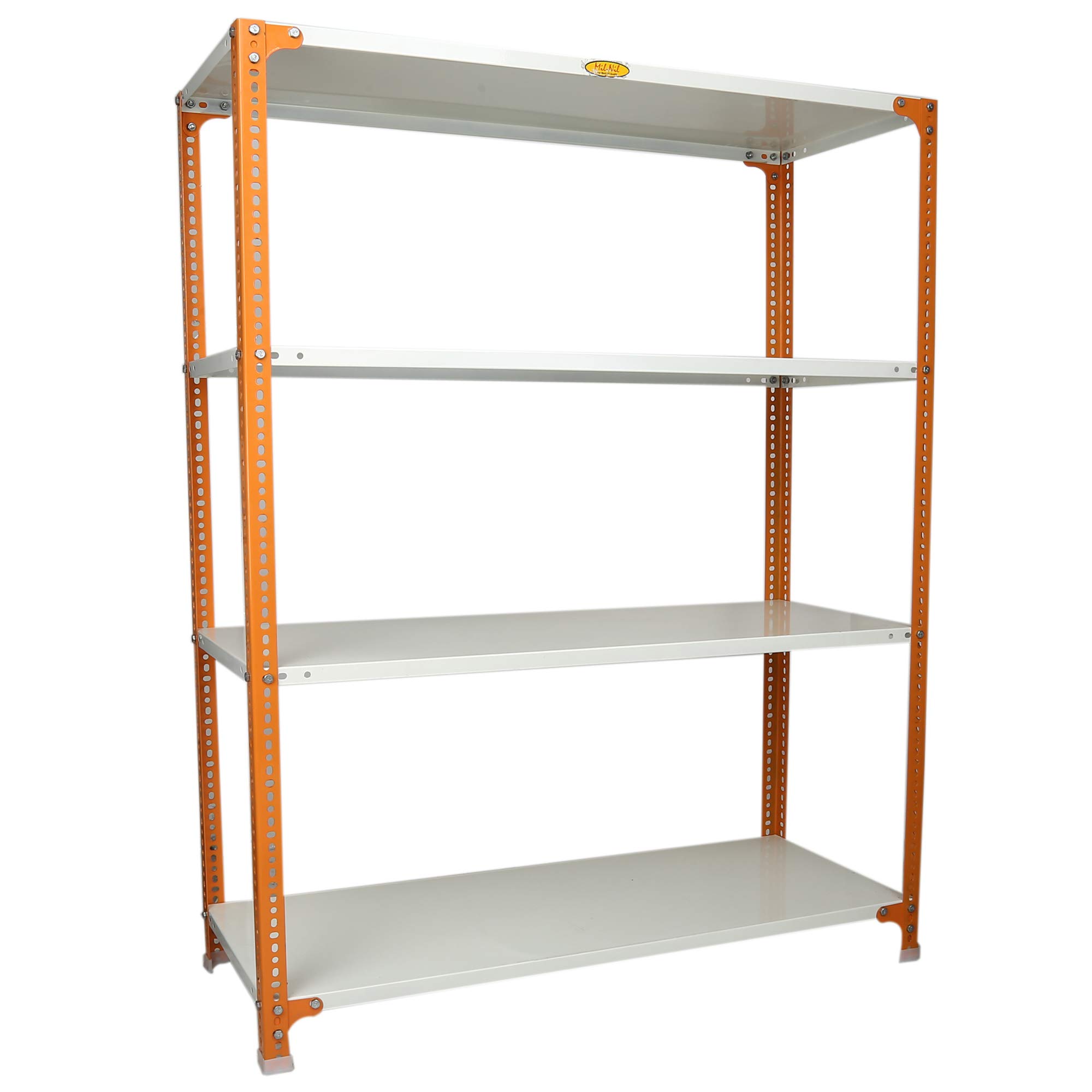 Item NameMil-Nil Prime CRC Sheet 4 Shelf Multipurpose Slotted Angle Rack, 60 x 47 x 18 Inch, 20 Gauge [(Orange-Ivory) Powder Coating] 14 Gauge Angles