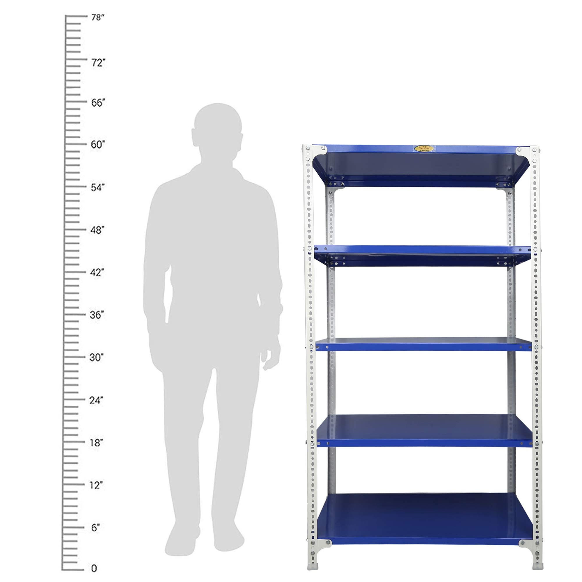 Mil-Nil Prime CRC Sheet 5 Shelf Multipurpose Slotted Angle Rack, 60 x 36 x 24 Inch, 18 Gauge [(Blue-White) Powder Coating] 14 Gauge Angles