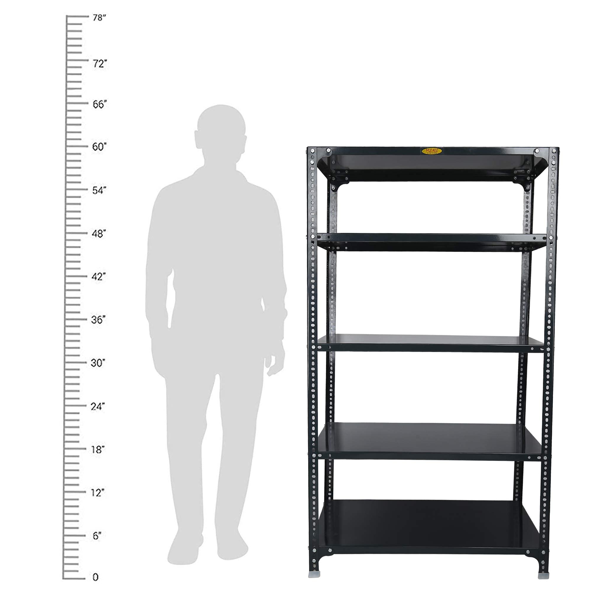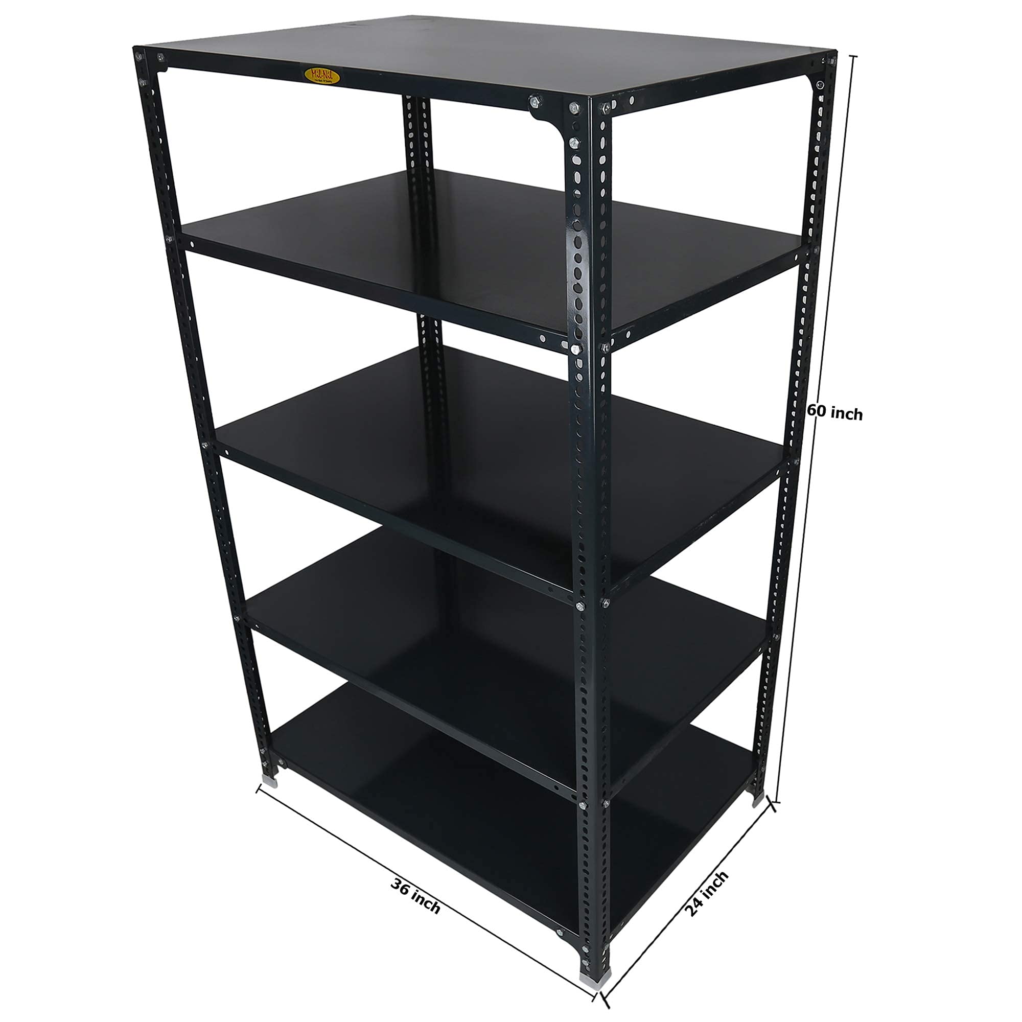 Item NameMil-Nil Prime CRC Sheet 5 Shelf Multipurpose Slotted Angle Rack, 60 x 36 x 24 Inch, 18 Gauge (Grey) 14 Gauge Angles