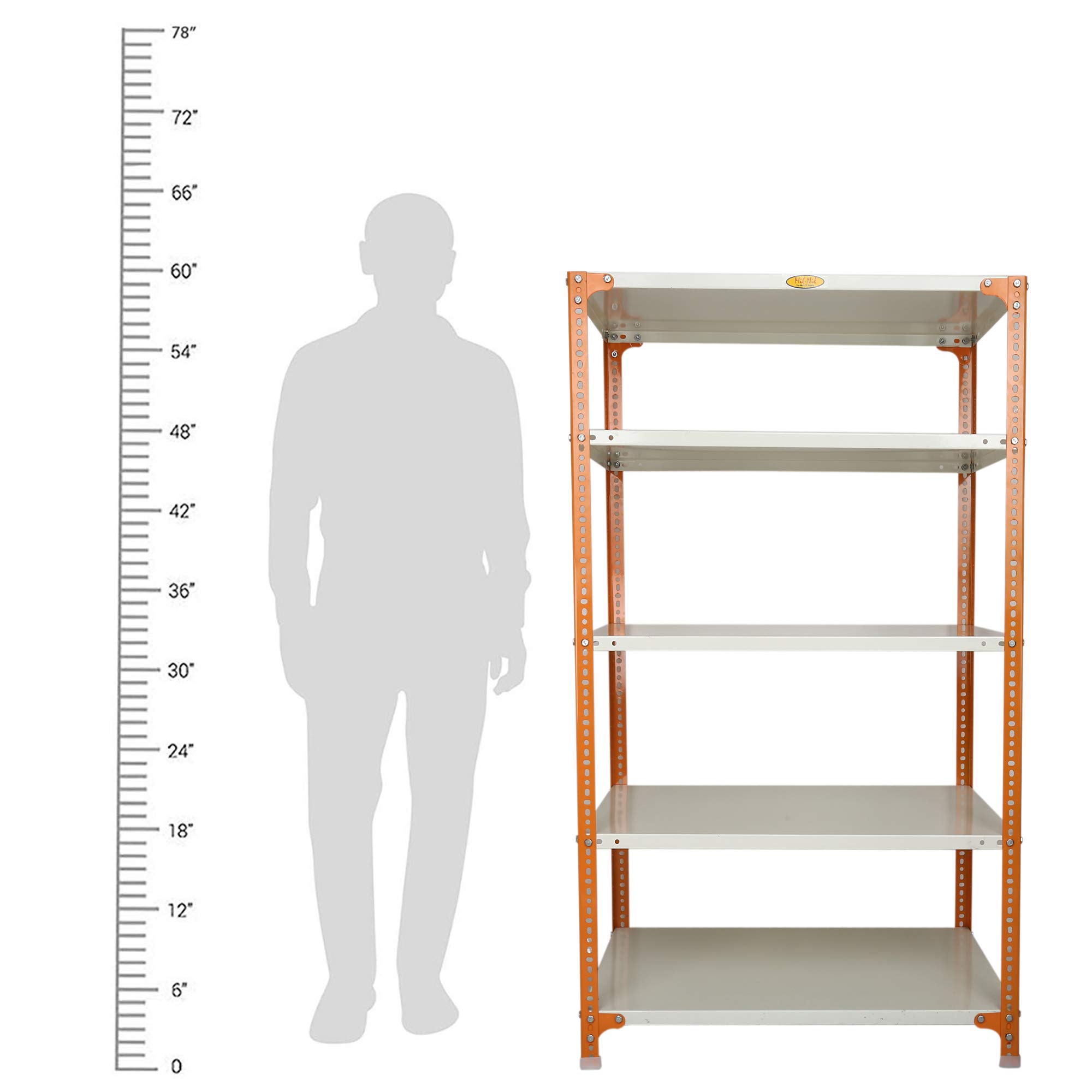 Mil-Nil Prime CRC Sheet 5 Shelf Multipurpose Slotted Angle Rack, 60 x 36 x 24 Inch, 20 Gauge [(Orange-Ivory) Powder Coating] 14 Gauge Angles