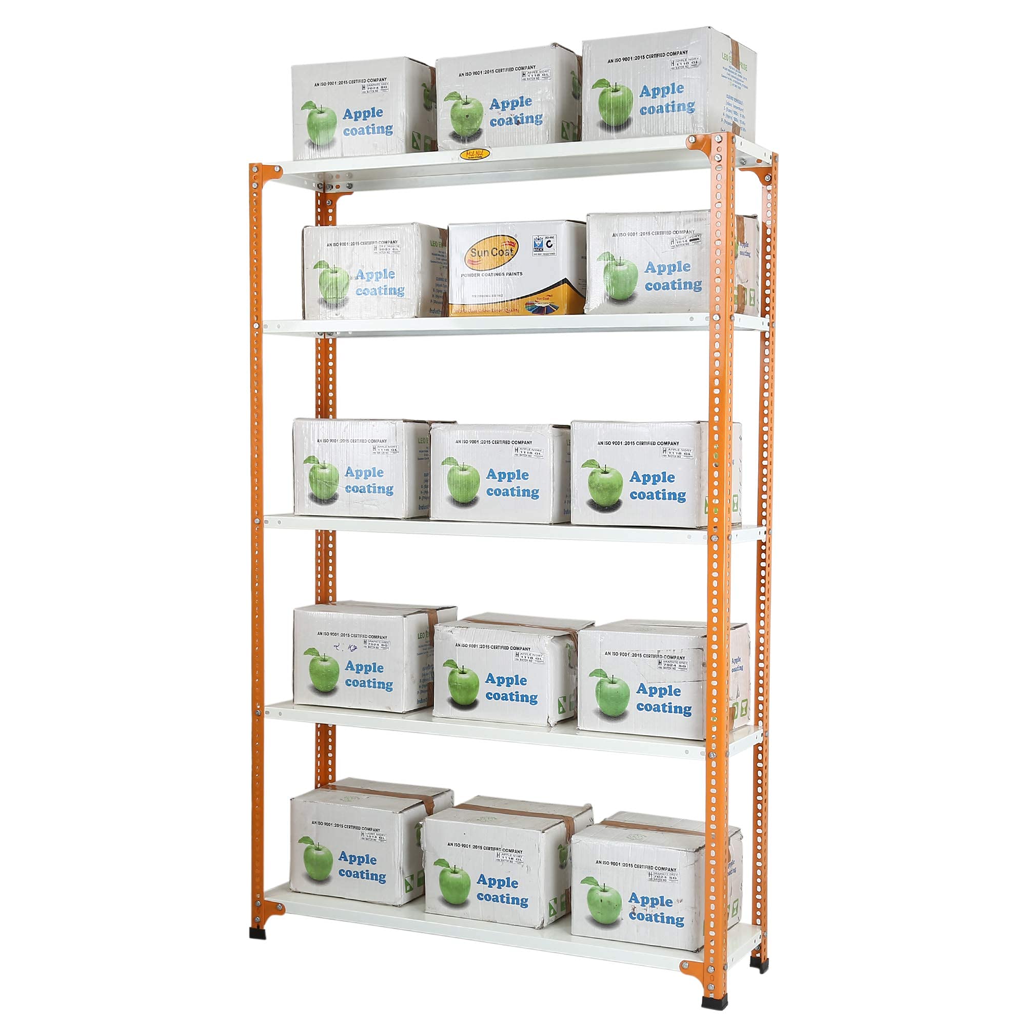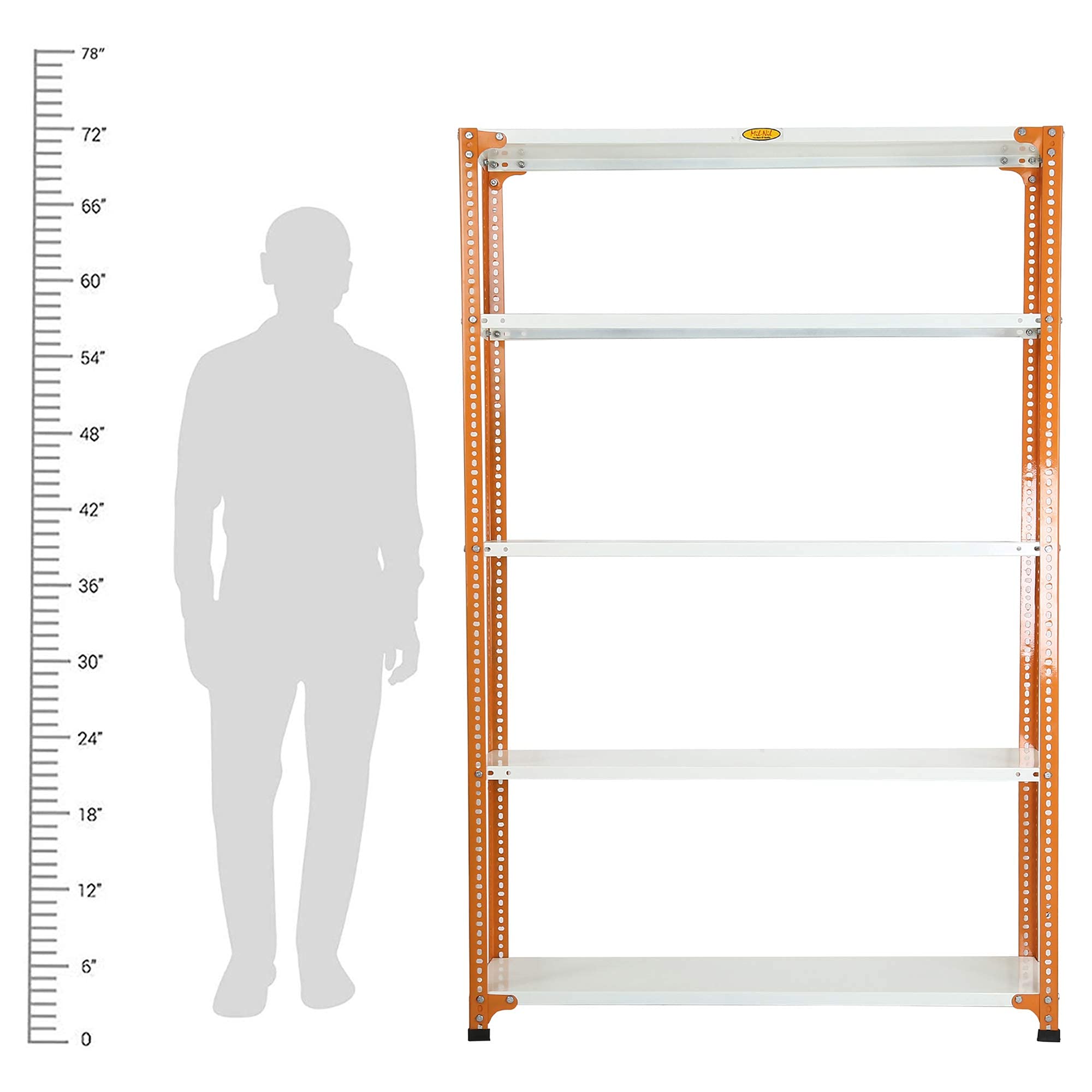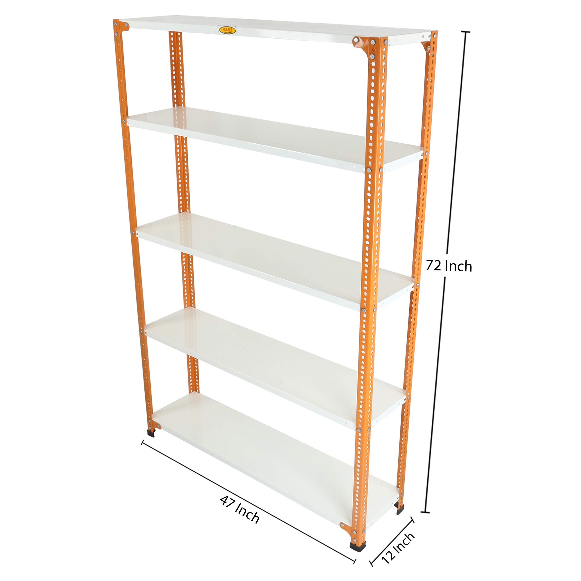 Item NameMil-Nil Prime CRC Sheet 5 Shelf Multipurpose Slotted Angle Rack, 72 x 47 x 12 Inch, 22 Gauge (Orange/Ivory) Powder Coated 16 Gauge Angles
