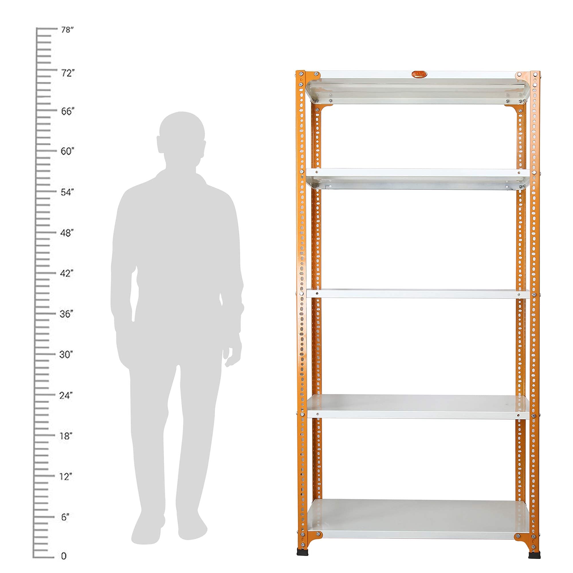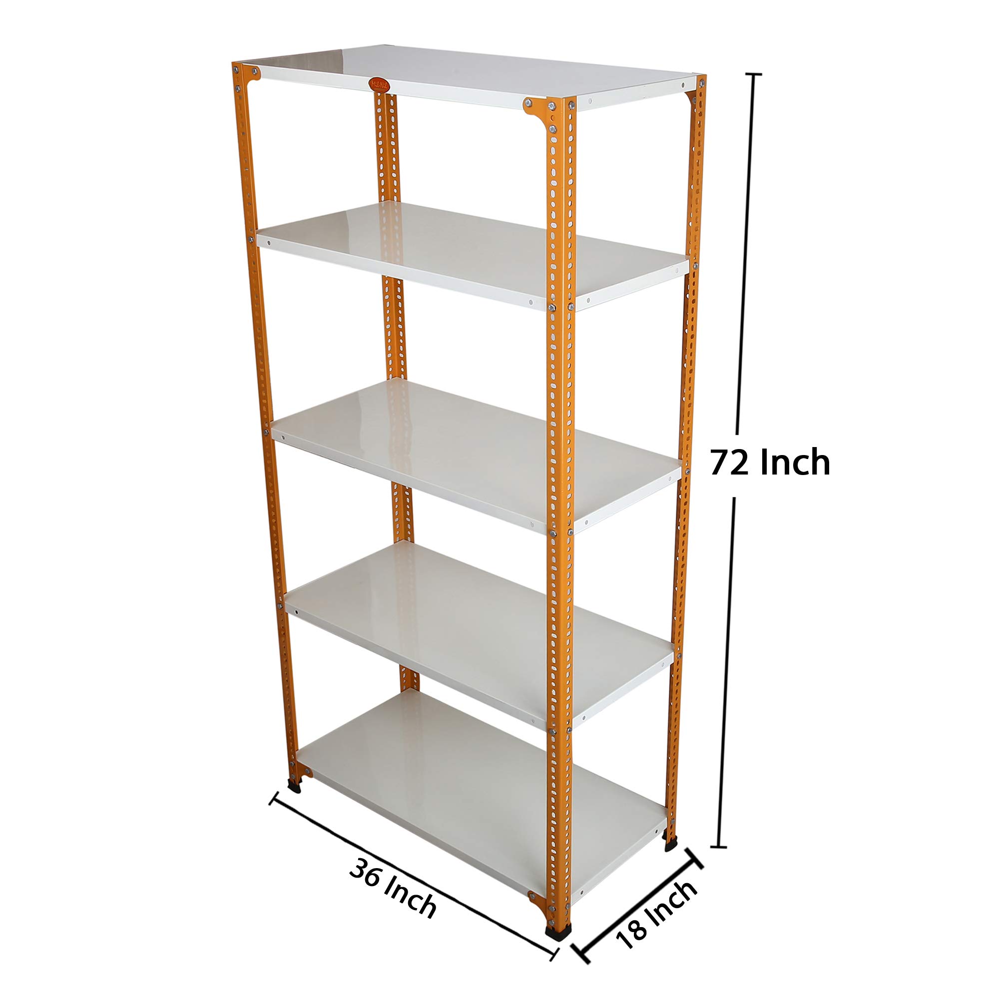 Mil-Nil Prime CRC Sheet 5 Shelf Multipurpose Storage Unit, 72 x 36 x 18 Inch, 20 Gauge (Ivory-Orange) Powder Coated 14 Gauge Angles