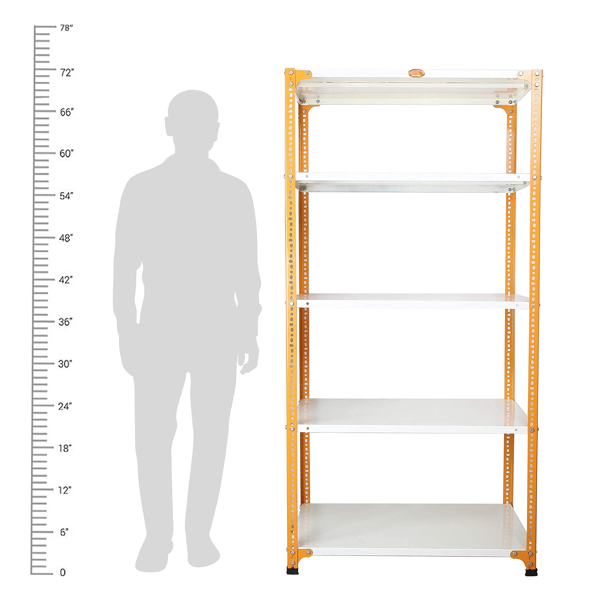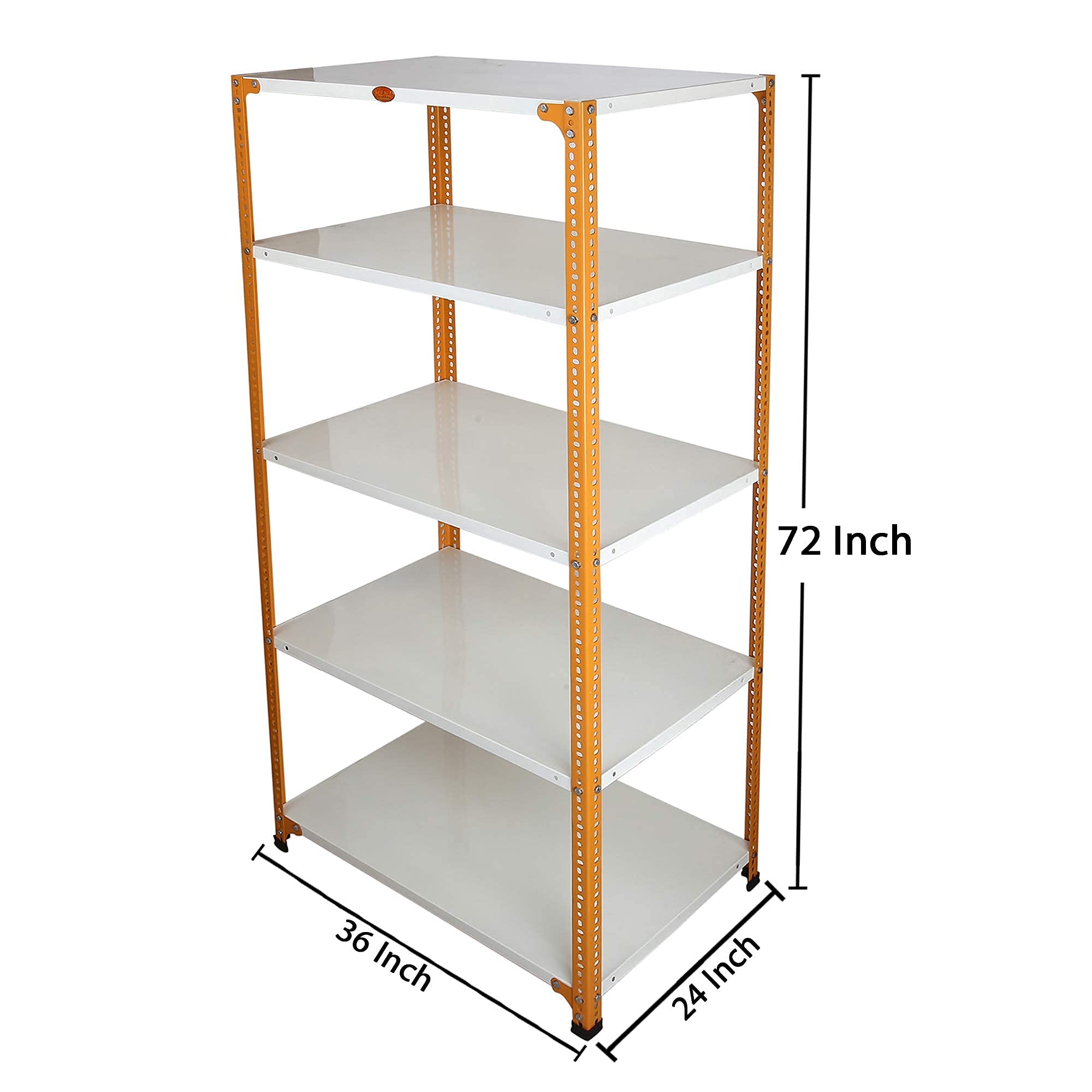 Mil-Nil Prime CRC Sheet 5 Shelf Multipurpose Storage Unit, 72 x 36 x 24 Inch, 20 Gauge (Ivory-Orange) Powder Coated 14 Gauge Angles