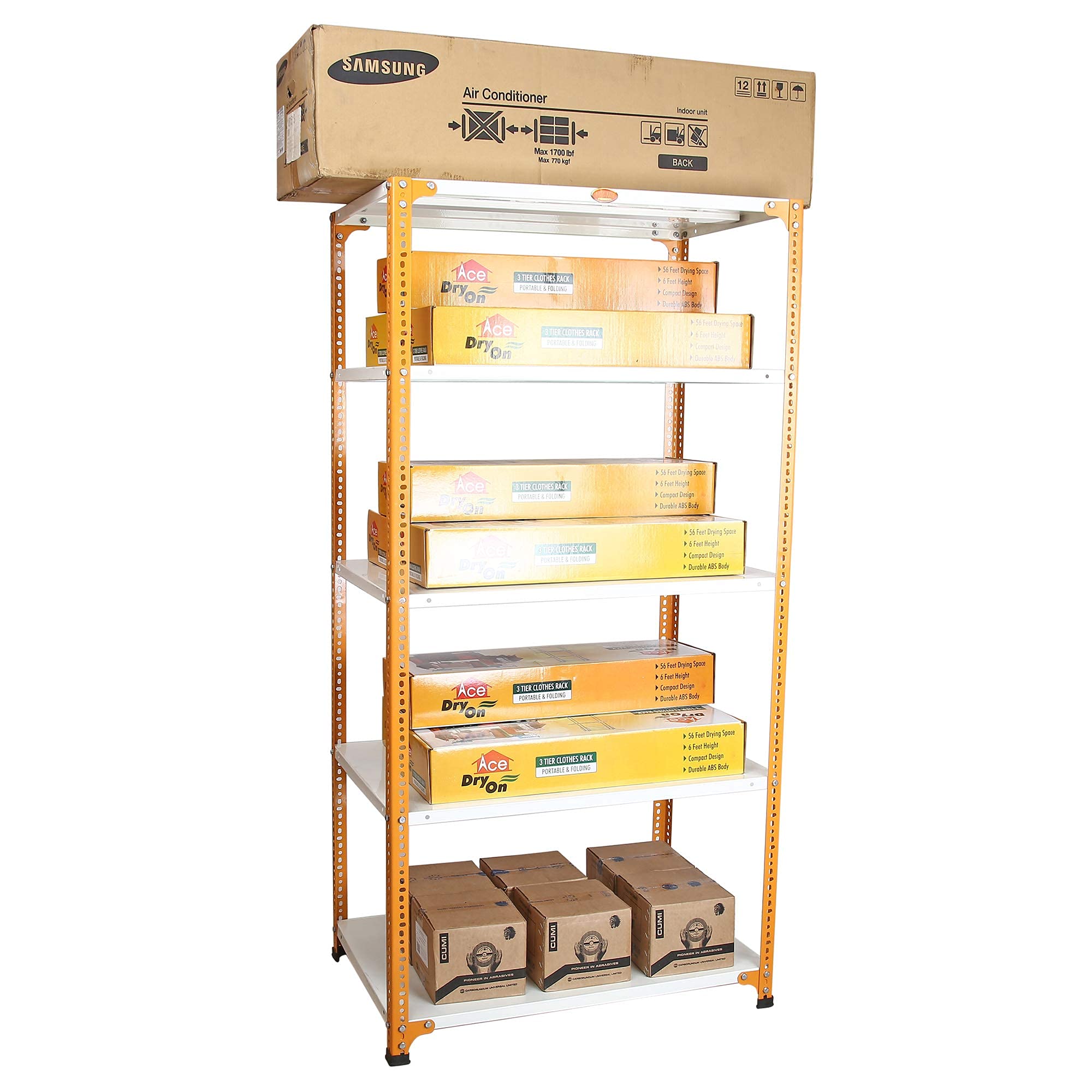 Ideal for home, office, industries and warehouse, the shelving unit offers a premium solution for everyday storage. From files and extra supplies at work to canned goods, pantry items, or small appliances in the kitchen to cans of paint, tools, seasonal household items, or holiday decorations in the garage or basement, the shelving unit helps keep it all neatly organized and easy to access. You can accommodate your clothes and books in one shelf. This rack shelf has enough looks to decorate your house and enough space to add up storage in your house. Books and clothes and other small things like toys can find their permanent place here.
