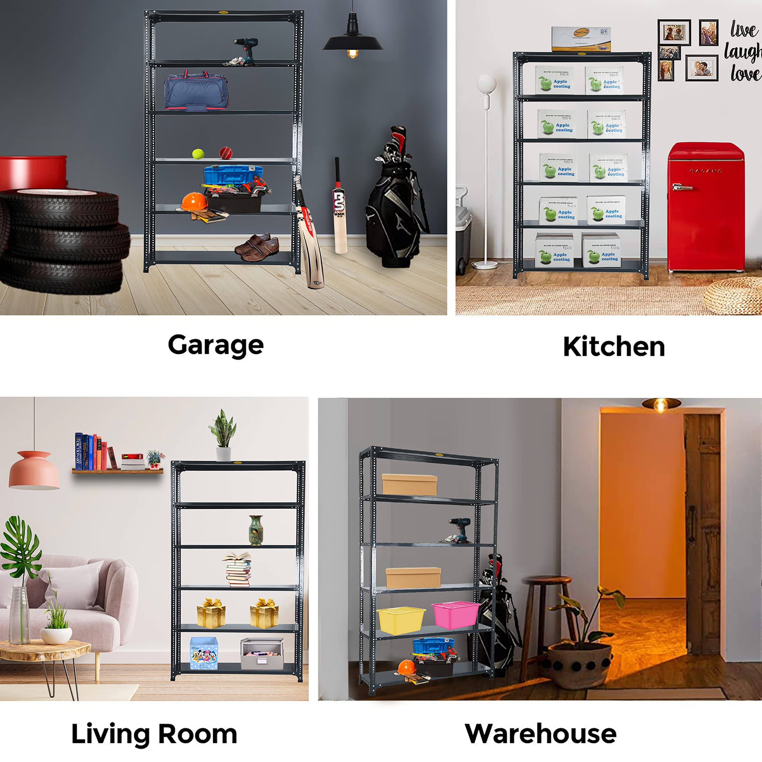 Bullet Point 4✔​​​​​​​ MATERIAL - PRIME CRC SHEET, Iron Slotted Angle, Free Protective Rubber Feet. Usage: It's a Multipurpose Storage rack that can be used as a kitchen rack, book rack, cloth rack, office rack, living room rack, Industries rack, etc.