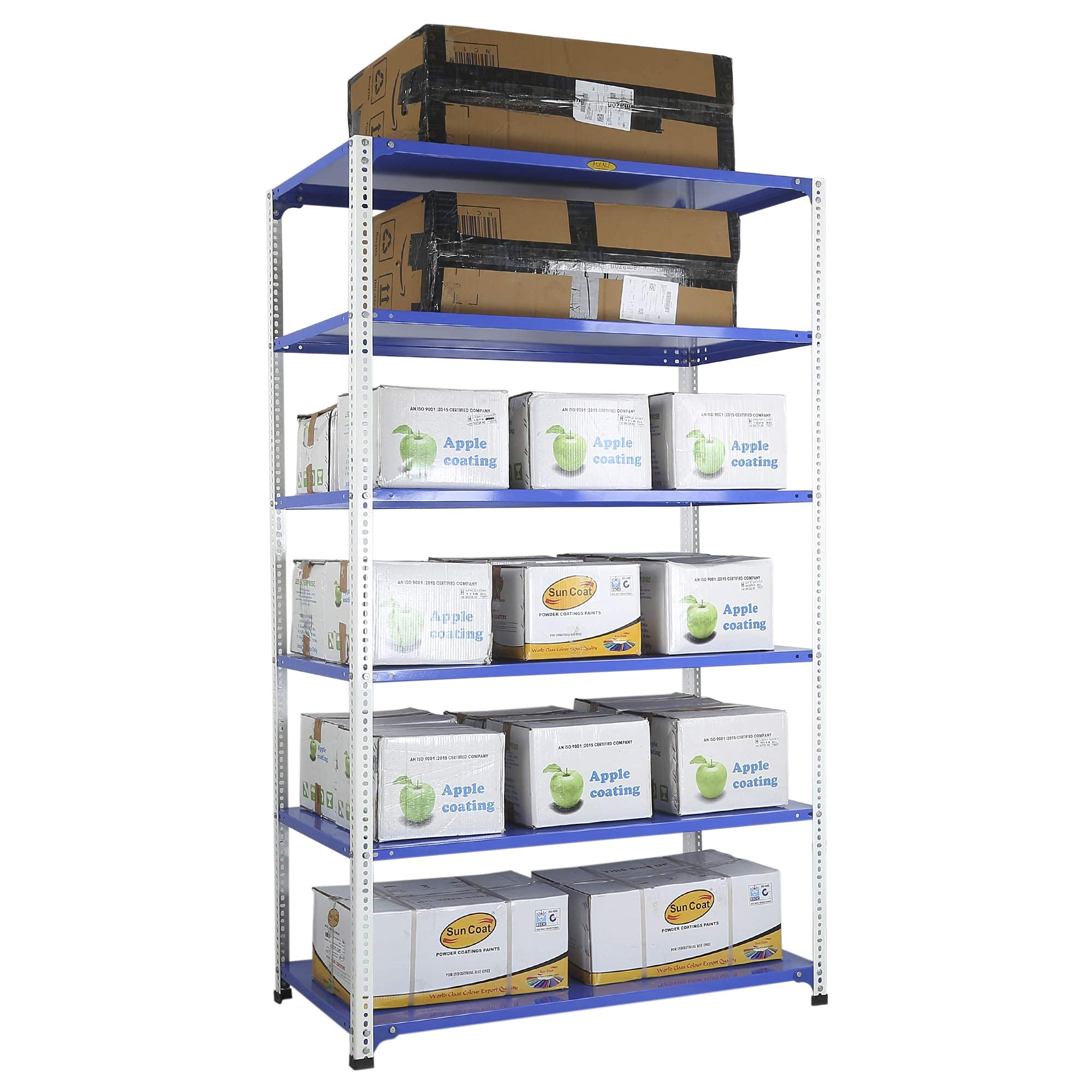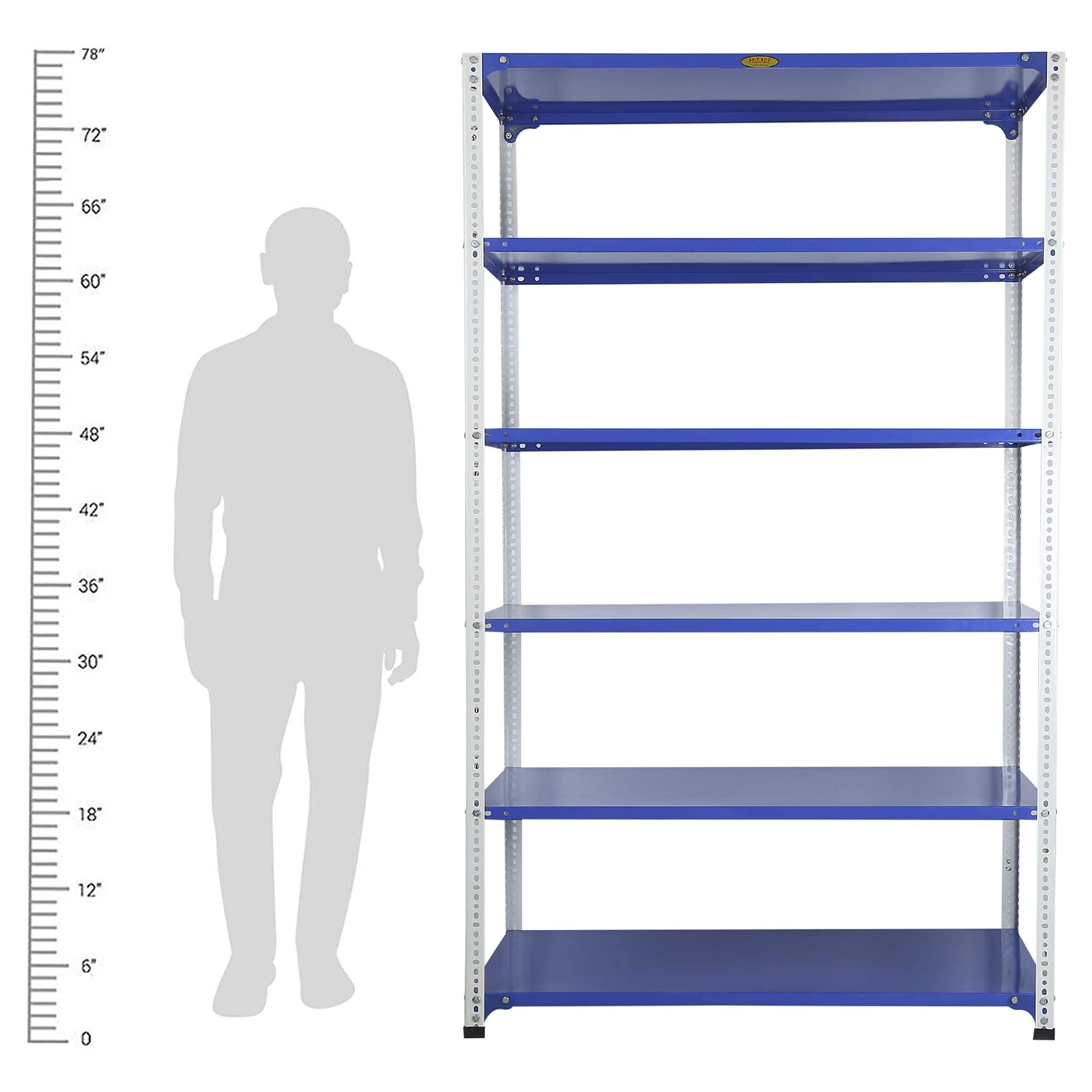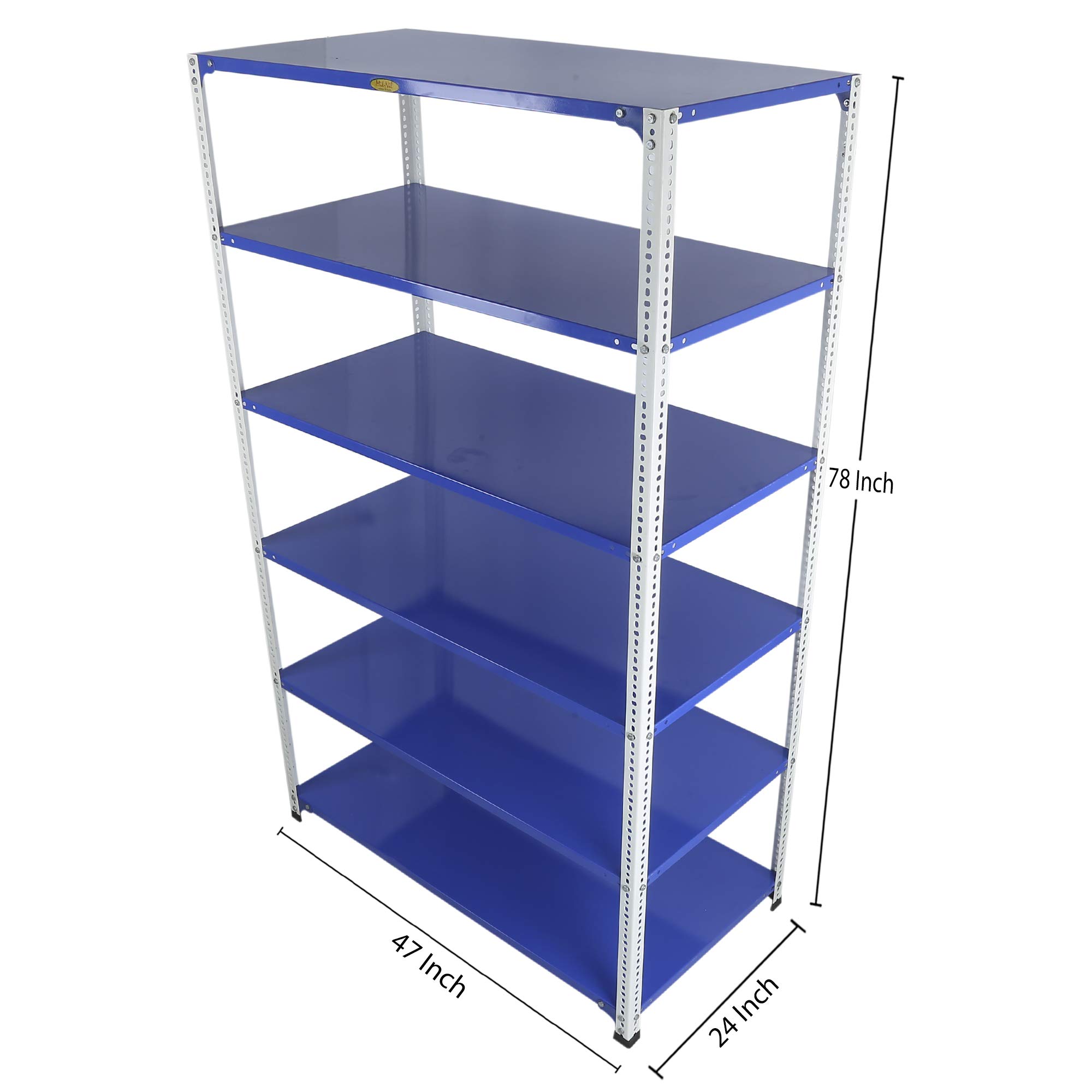 Item NameMil-Nil Prime CRC Sheet 6 Shelf Multipurpose Slotted Angle Rack, 78 x 47 x 24 Inch, 20 Gauge (Blue-White) Powder Coated 14 Gauge Angles