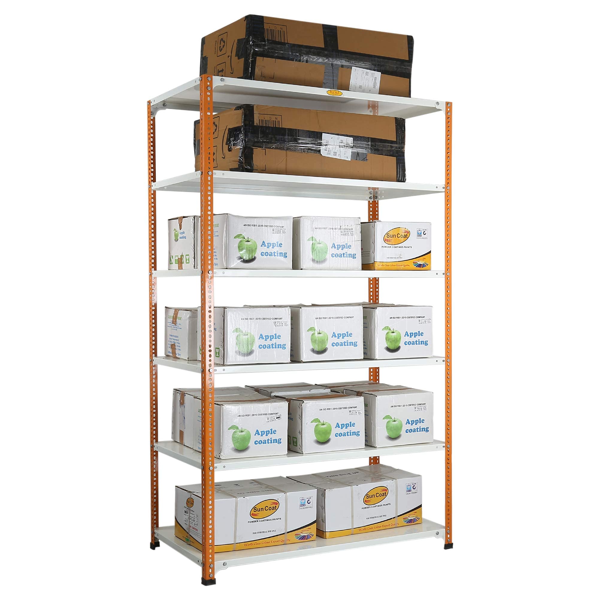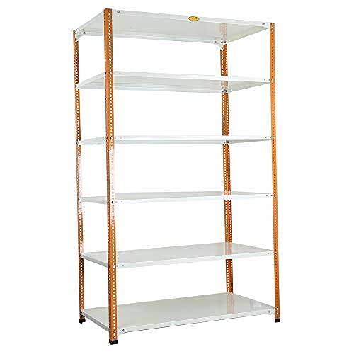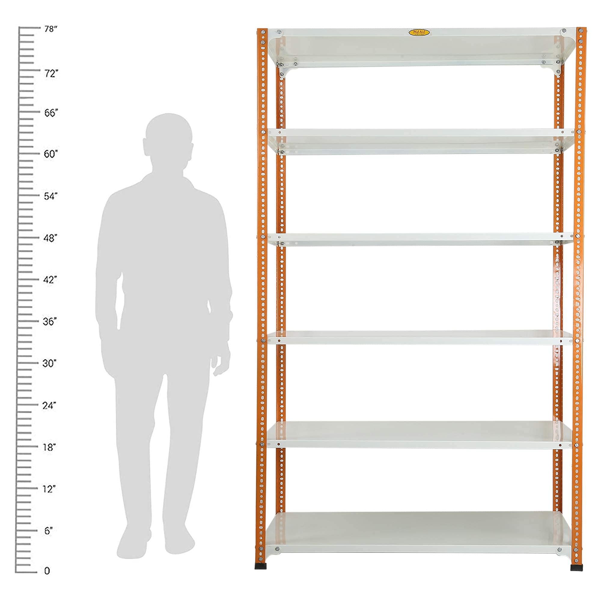 Item NameMil-Nil Prime CRC Sheet 6 Shelf Multipurpose Slotted Angle Rack, 78 x 47 x 24 Inch, 20 Gauge (Orange/Ivory) Powder Coated 14 Gauge Angles