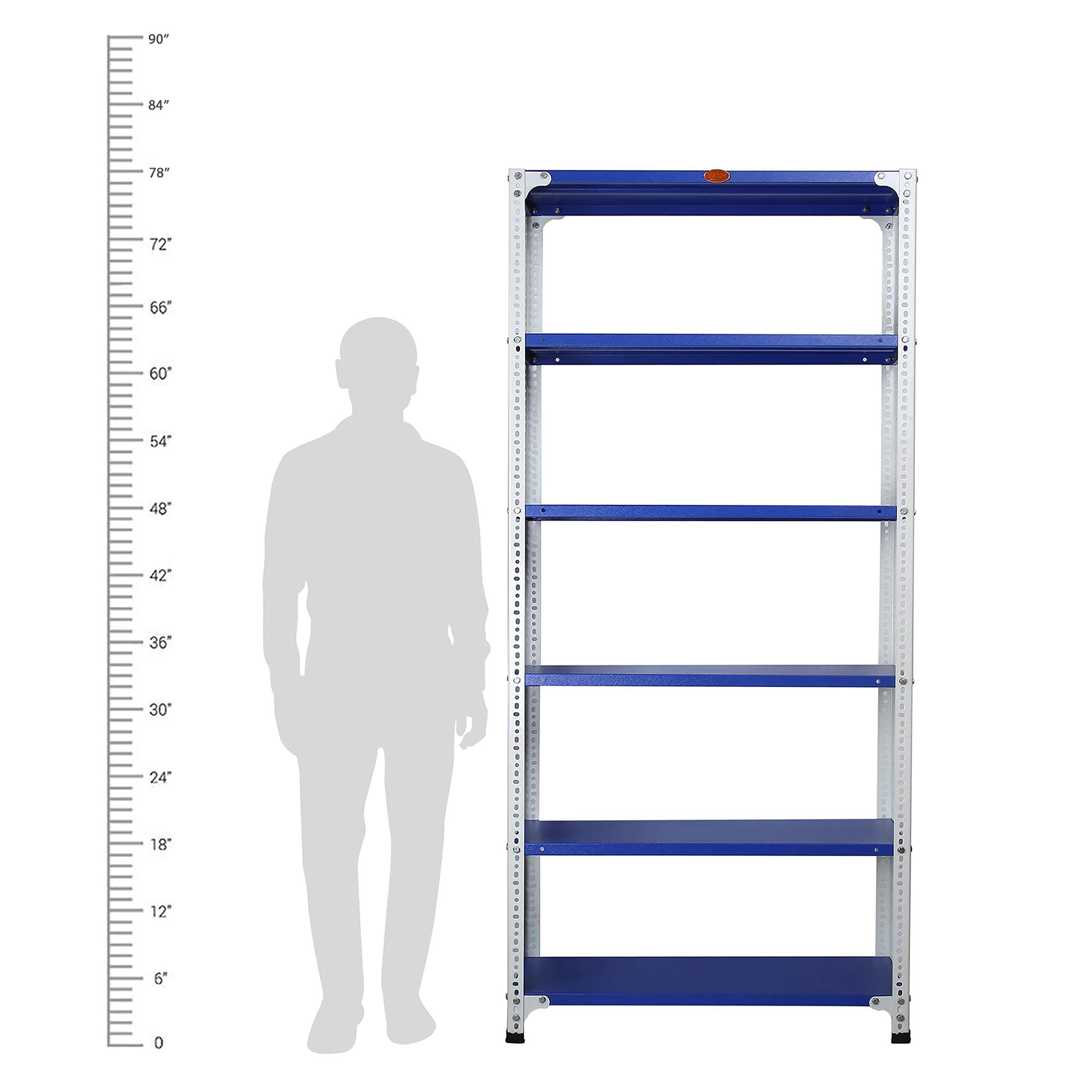 Item NameMil-Nil Prime CRC Sheet 6 Shelf Multiuse Space Saving Rack, 78 x 36 x 12 Inch, 20 Gauge (Blue-White) Powder Coated 14 Gauge Angles