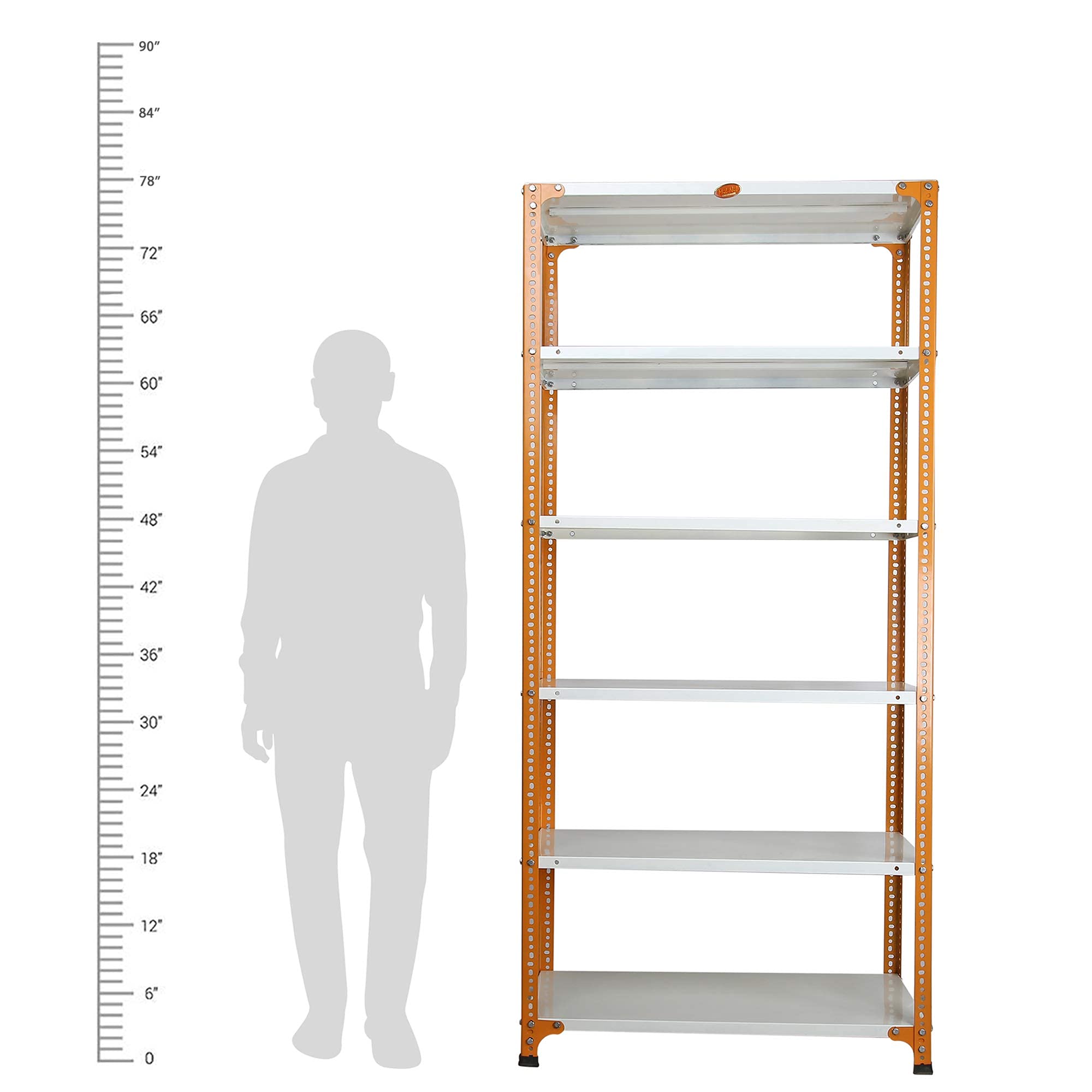 Item NameMil-Nil Prime CRC Sheet 6 Shelf Multiuse Storage Unit, 78 x 36 x 18 Inch, 24 Gauge (Ivory-Orange) Powder Coated 16 Gauge Angles