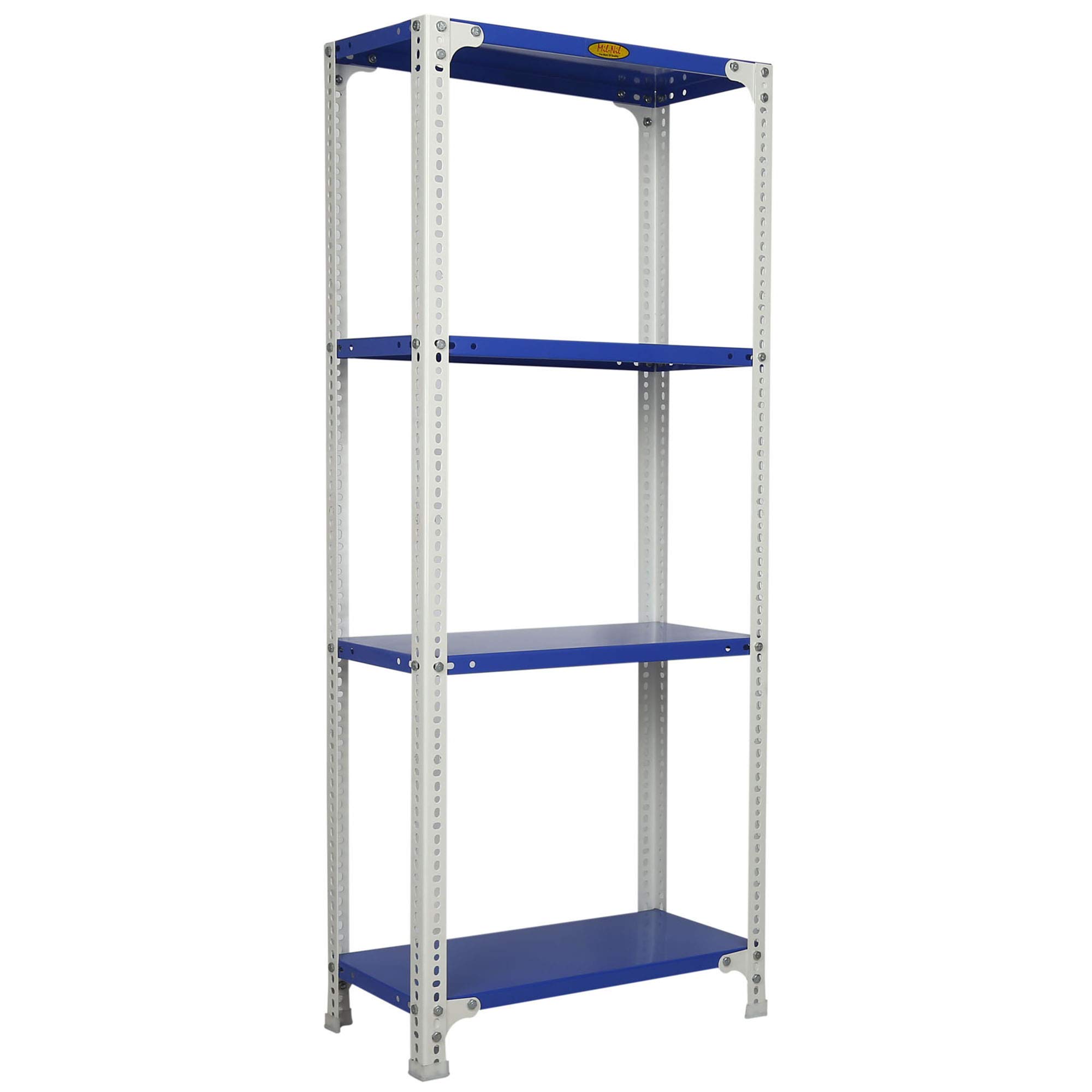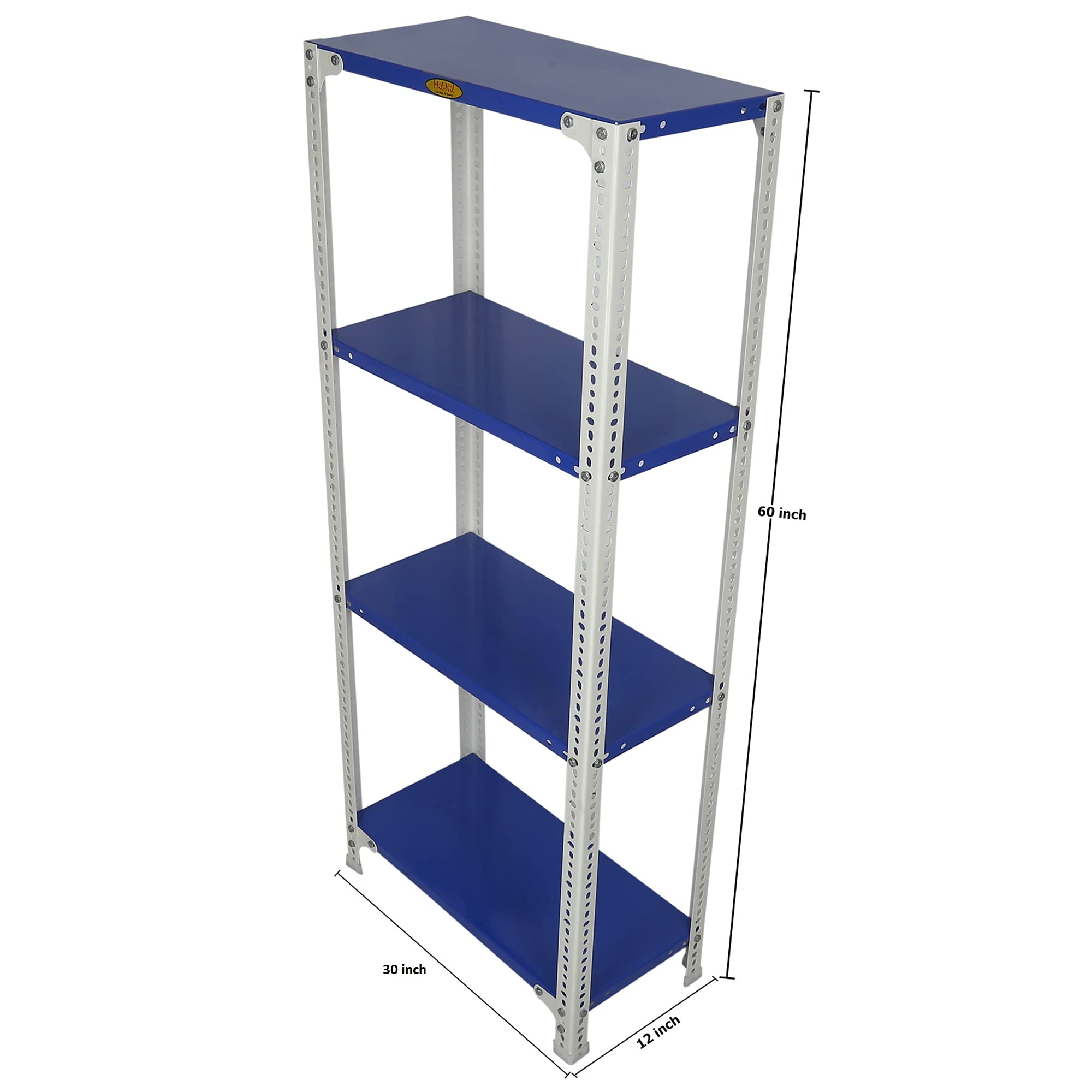 Item NameMil-Nil Prime CRC Sheet 60X30X12 Inch Multipurpose Storage, Adjustable Shelf, Slotted Angle Rack with 4 Shelves 24 Gauge_Blue/White 16 Gauge Angles