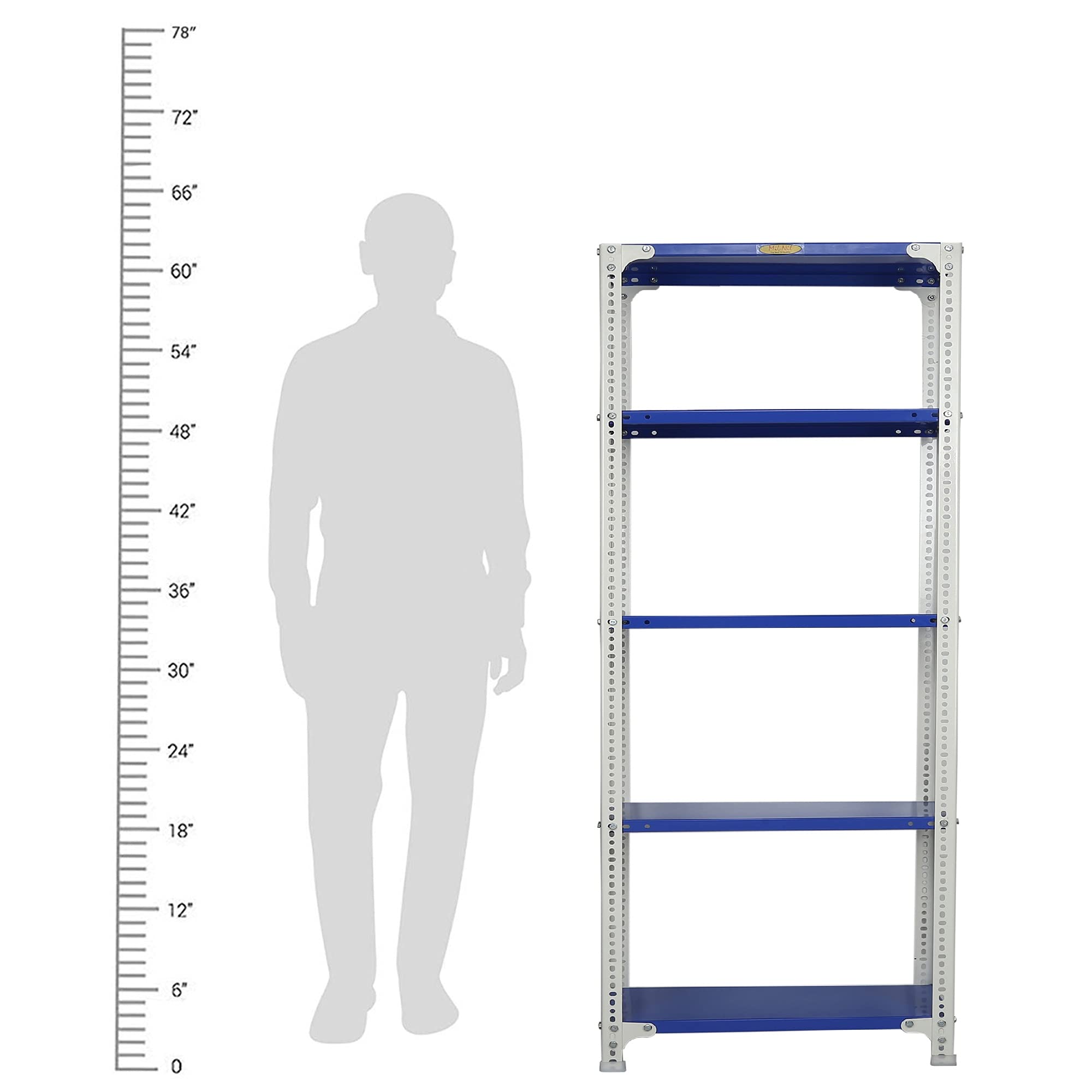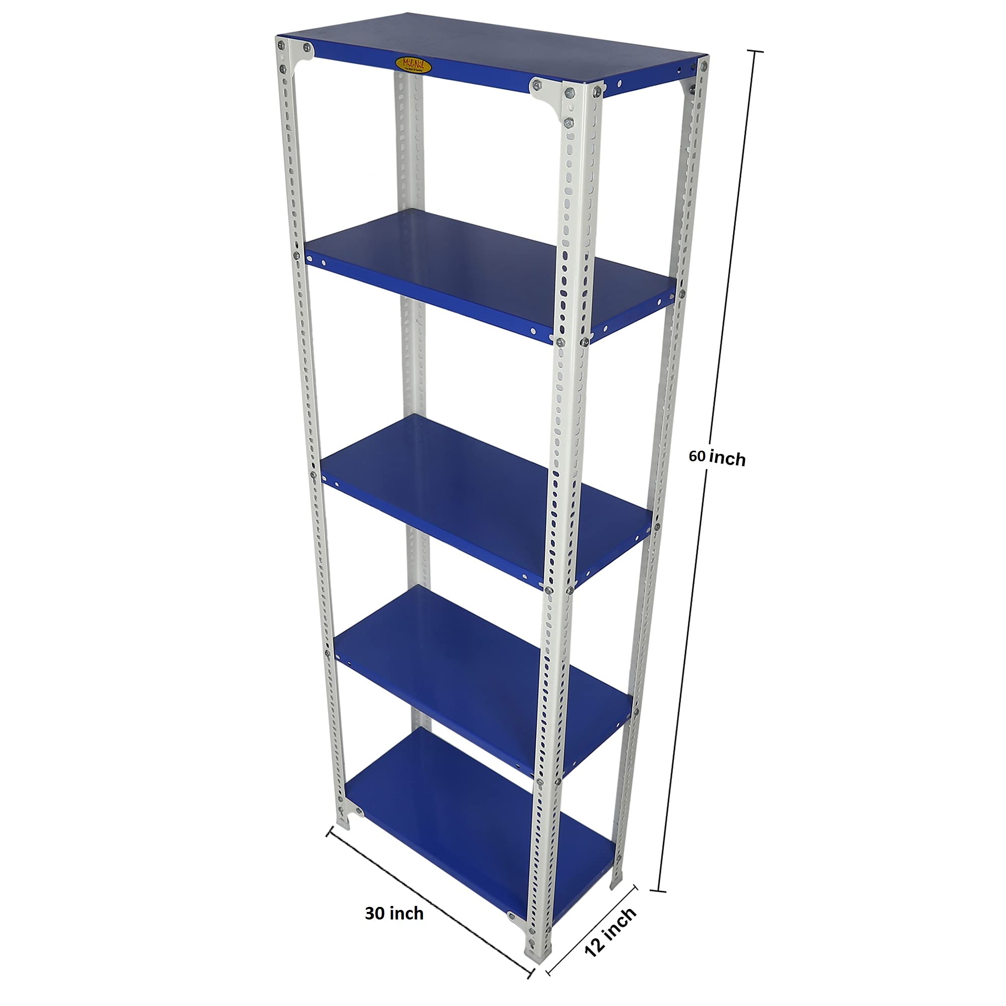 Item NameMil-Nil Prime CRC Sheet 60X30X12 Inch Multipurpose Storage, Adjustable Shelf, Slotted Angle Rack with 5 Shelves 22 Gauge_Blue/White 16 Gauge Angles